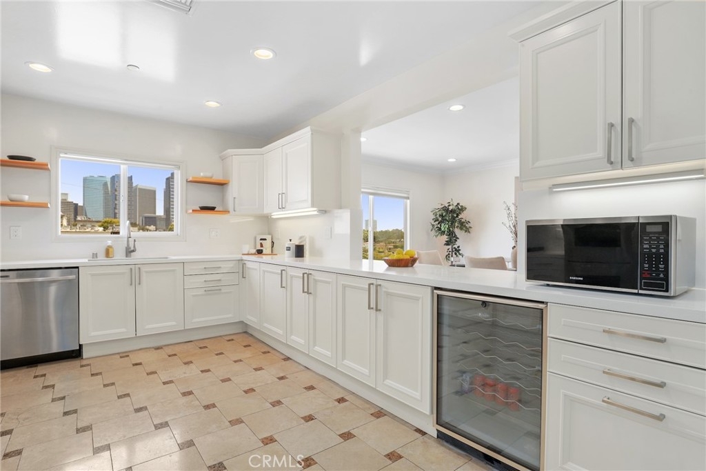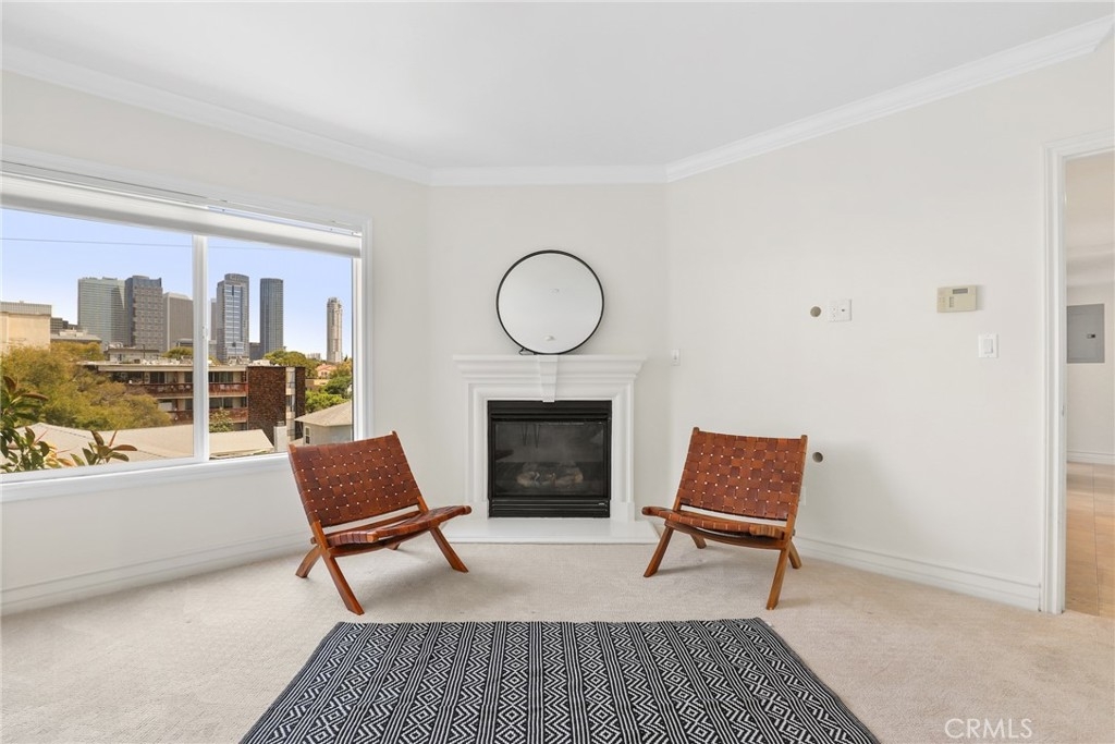 Proudly introducing this spacious 3-bedroom, 2.5-bath corner unit spanning 1,740 sq. ft., perfectly positioned in a highly sought-after Westwood area. With a desirable southeast orientation, this home captures abundant natural light and offers panoramic depth views from its wraparound balcony. The open-concept living and dining area showcases elegant bamboo flooring, recessed lighting, and a decorative fireplace, all seamlessly connected to the balcony through three sliding glass doors—ideal for both relaxing and entertaining. The updated kitchen features quartz countertops, crisp white cabinetry, stainless steel appliances, a wine fridge, and a farmhouse sink. The primary suite boasts plush carpet, a walk-in closet, and sweeping city views. Its en-suite bath offers a spa-like retreat with a freestanding soaking tub and separate shower. Two additional bedrooms also feature fresh carpet and share a well-appointed bath. In-unit laundry is conveniently located in the hallway. Residents enjoy a well-maintained complex with an elevator, fitness center, serene courtyard, two assigned parking spaces with EV charger capability, and guest parking. All of this is set in an unbeatable location moments from UCLA, Westfield Century City, Westwood Village, Beverly Hills, and within the coveted Westwood Charter School district.