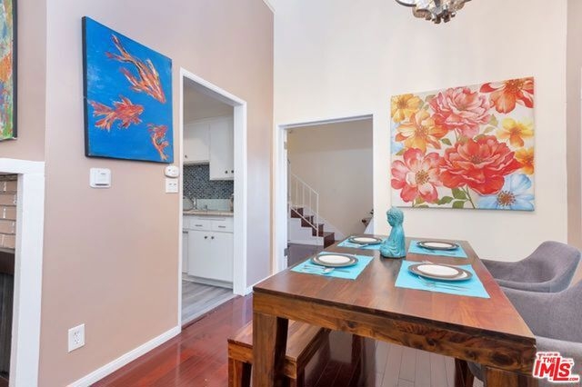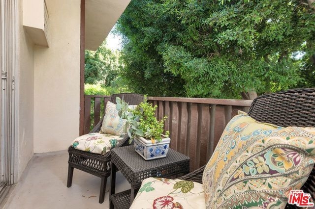 This move-in ready two bedroom, one and three-quarter bath penthouse condo boasts a bonus loft and soaring two-story ceilings. This light and bright front corner unit offers a large balcony and tree top views. Entertain guests in a spacious living and dining area with hardwood floors throughout, plantation shutters, a fireplace and built-in bookshelves. The large kitchen features granite counters, a tile backsplash and offers tons of cabinet space. Each bedroom is en suite and privately located on opposite sides of the condo. You will enjoy this charming courtyard complex with low homeowner's dues and side by side parking. Close proximity to UCLA, Westwood Village, 405/10 freeways and more.