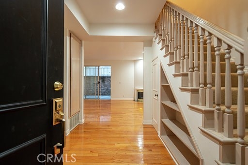 Superb Century City adj. location with a short walk to the beautifully renovated Century City/Westfield shopping center for high end shopping, dinning, entertainment and the future Metro Purple line station. Enjoy urban living with all that it offers yet come home to your peaceful rear 2 br/2.5 bath two-level condo with a massive patio perfect for entertaining. This coveted corner townhome style unit with 2 separate entrances feels like a zen retreat in the middle of the City, with plenty space for beautiful plants to surround your haven. Features include formal entry with built-in shelves and a coat closet. The downstairs boasts beautiful hardwood floors; a fire place in the living room to create a cozy atmosphere; and a mini bar for easy mingling with friends. Bedrooms upstairs are carpeted and both have walk-in closets. The master bedroom has yet another balcony and master bath a soaker tub! Great management with very low HOA dues which cover: water, building earthquake insurance and umbrella liability insurance. Building is hardwired for Starry 5G high speed internet. Probate sale - NO COURT CONFIRMATION REQUIRED. Bonus: Enjoy the building’s common area rooftop deck for your summer gatherings surrounded by lush fruit plants: lemon, lime and blueberry. Yum!