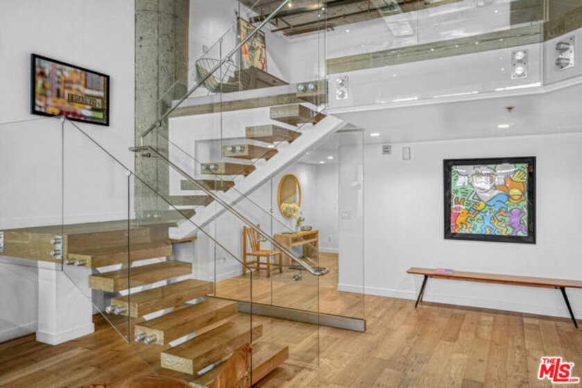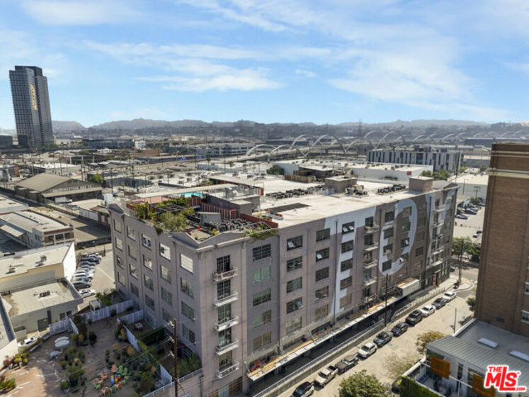 This is a rare opportunity to own a truly distinctive ground-level residence in the iconic Toy Factory Lofts, ideal for those seeking a highly flexible space that can comfortably support creative or studio use within a residential setting. Originally built in 1924, this historic 121-unit building blends preserved industrial character with thoughtful modern upgrades. Uniquely positioned as the only residential unit on the ground level, the home features a private, street-level entrance, offering exceptional flexibility for hosting and entertaining while maintaining residential privacy. The open layout naturally lends itself to studio configurations, making it especially appealing to artists, designers, photographers, collectors, and creative professionals. Soaring ceilings and oversized industrial windows flood the space with natural light, enhancing both functionality and visual impact while providing expansive wall space and adaptable floor planning. The one-bedroom layout includes two full bathrooms and a walk-in closet, allowing for clear separation between living and creative zones. The open kitchen is well equipped with an induction cooktop, dual convection oven and microwave, dishwasher, and refrigerator, ideal for extended days or entertaining. Hardwood floors run throughout, and soundproof windows provide a quiet, refined interior despite the surrounding urban energy. An in-unit washer and dryer add everyday convenience. Recent upgrades include a new HVAC system installed last year, a smart Nest thermostat, and smart recessed lighting, well suited for controlled ambiance and flexible use. Residents enjoy a full suite of amenities including a pool, barbecue area, landscaped garden, fire pit, expansive rooftop common areas with sweeping skyline views, and a two-level gym. A convenience store is located on-site, and Hank's Organic Supermarket & Grill is directly across the street. EV charging is available throughout the garage. Parking is a standout feature, with two assigned tandem garage spaces, offering rare convenience for owners and visitors and making this ground-level residence especially functional. Security and peace of mind are addressed with a gated entrance, video surveillance, security patrol, and full-time doorman service, complemented by active Arts District Business Improvement Team patrols. Located along one of the Arts District's most dynamic and creative corridors, you are surrounded by studios, dining, and cultural destinations, making this an exceptional opportunity for those seeking an inspiring, flexible residence with strong creative and studio potential.