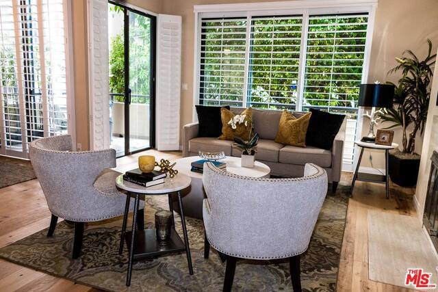 Stunning move-in-ready spacious 2 bedroom/2 bathroom private back corner unit with only one shared common wall! High ceilings with grand entrance. Remodeled eat-in kitchen with new stainless steel appliances, quartz counter tops, and fixtures. In-unit side-by-side washer/dryer. Living room and formal dining open up to a balcony. Living room includes a gas wood-burning fireplace. New quality engineered wood flooring and new custom made plantation shutters through out unit. New "smart" HVAC (heat/air) with 10 year warranty. Unit includes two storage and parking spaces. Secure building (cameras throughout) with beautifully remodeled lobby and recreation room. Also, includes a gym, pool, and spa. HOA includes earthquake insurance. A MUST SEE!