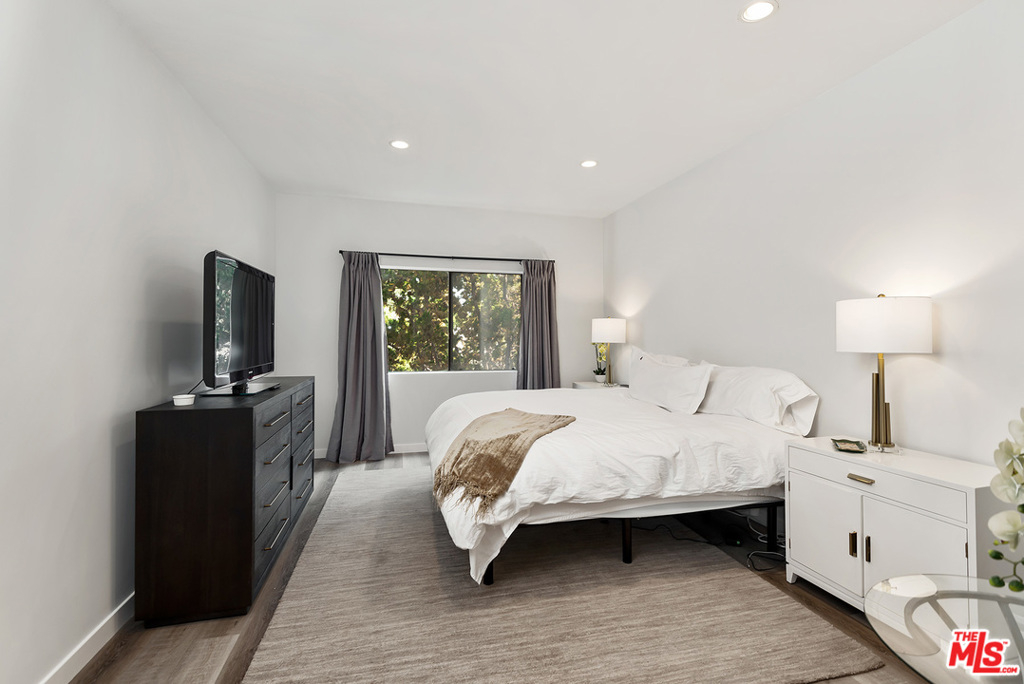 Large 1 bedroom 1.5 bath + DEN with approximately 1395 SF. Features large plank laminate flooring throughout, granite kitchen with breakfast bar, side by side laundry room, powder room, living room with large balcony, den with wet bar and fireplace, master with walk in closet, master bath with marble floors, double sinks, soaker tub, and rainforest shower. The building has 2 parking spaces, pool, spa, gym, sauna and rec room. Property is conveniently located near shops, restaurants, Century City and UCLA.