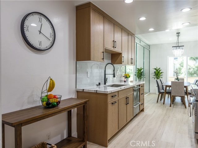 Beautifully remodeled 2-bedroom, 2.5-bath condo in prime Westwood location with all work completed under permits to ensure quality and compliance. Features include 8mm waterproof SPC vinyl flooring with 12mm underlayment, new double-pane windows and sliding door, recessed lighting with dimmers, and a marble-faced fireplace. The bathrooms showcase marble floors and backsplash, custom vanities with granite countertops, Kohler faucets, 12" rainfall showers, LED mirrors with defrost, and Kohler toilets. The modern kitchen boasts frameless cabinets, granite countertops, glass tile backsplash, and high-end appliances including a 36" American Range 6-burner (ARROB366-N), 42" ZLine range hood (619-42), GE Profile built-in microwave (PWB7030SLSS), Fisher & Paykel double-drawer dishwasher (DD24DDFTX7), Fisher & Paykel counter-depth French door refrigerator (RF170ADX4N), and Kohler faucet. Additional highlights include central air/heat, in-unit laundry room, balcony off the living room, optional no-stairs access from garage to the unit via elevator in the lobby, gated 2-spaces tandem parking, and community pool, spa, and clubhouse. Located in the desirable Westwood Charter school district, just minutes from UCLA, Century City, and Beverly Hills.