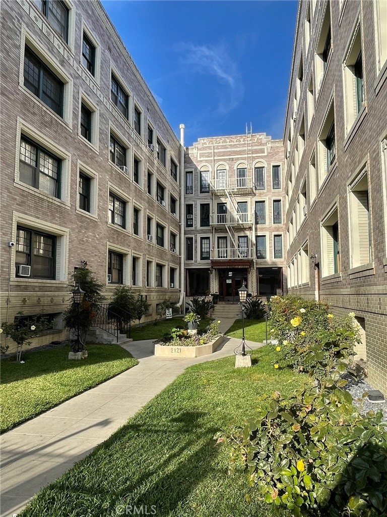 Remodeled and Turnkey. Bright courtyard facing 3rd Floor Studio (pied-a-terre) condo in the historic Glen Donald building, MacArthur Park's iconic and architecturally unique landmark built in 1923. The 400sqft (taped per owners measurement) unit features exposed brick, original hardwood floor, French doors open to a south view of the courtyard, HUGE walk-in closet, updated kitchen and bathroom, ceiling fan, window a/c. Character and charm abound from the Beaux Arts styled exterior through the gated access courtyard, to the grand marble floored lobby. ALL UTILITIES INCLUDED IN THE LOW $365 HOA fee (covers electric, gas, water, trash)! The Glen Donald has a walking score of 94, located close to the Metro red line, DTLA, Staples Center, USC, and historic MacArthur Park, two third party parking lots available nearby for monthly fee: 726 S. Lake Street and 942 S. Alvarado St. Amenities include a grand lobby, shared laundry room, gym, basement bike storage, recreation and game rooms with billiards and table tennis. A slice of history at an unbeatable price! Property qualifies under Los Angeles City first time buyer loan program for assisted down payment.