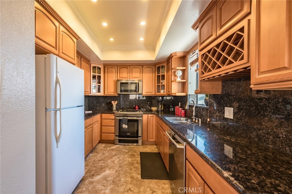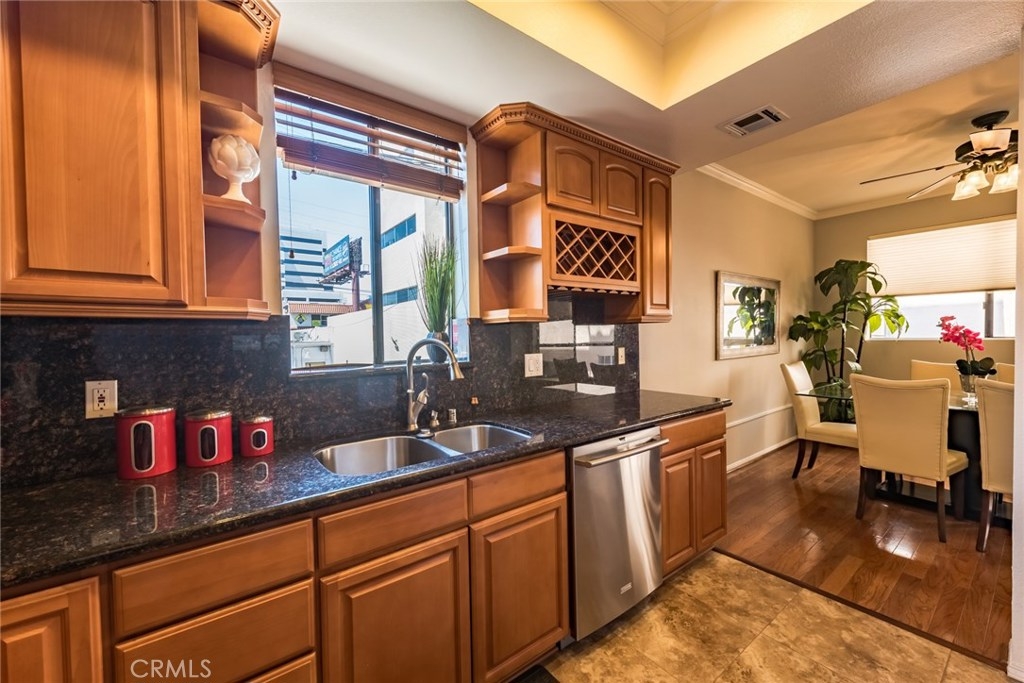 Beautiful 2 bedroom and 2 bathroom townhouse style corner unit features a recently remodeled kitchen and master bathroom. Spacious floor plan! Awesome location! Great amenities! The remodeled kitchen features newer cabinets, granite counters, tile floors, and stainless steel built-in appliances and fixtures. Open living and dining rooms feature high ceilings, hardwood floors and a floor to ceiling gas fireplace. One bedroom and bath are downstairs. The spacious master suite is located upstairs and features the remodeled master bath, walk-in closet, balcony, and a private office / bonus room. The master bath has double sinks, separate shower and tub, and the tub is a large-size soaking tub. Highlights include: extra walk-in closets and storage spaces, laundry inside the unit with a newer high-end washer & dryer, central air & heating, ceiling fans, recessed lighting, raised panel doors and much more. There are two secured parking spaces which are not tandem! This awesome unit is located in a great neighborhood with many restaurants, shops & transportation options nearby, including the Expo/Sepulveda station on the new Expo Light Rail.