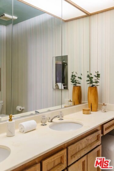 Welcome to an exceptional offering in the highly sought-after Bentley Pines community--a boutique enclave of only 14 residences ideally positioned where West LA and Westwood meet. This generously sized 2-bedroom, 2-bathroom residence features a sun-drenched balcony, in-unit laundry, and a fireplace with a dramatic floor-to-ceiling wood-paneled surround. The open-concept layout is ideal for hosting, as the dining room, living room, and balcony blend seamlessly. Enjoy treetop views of the courtyard from the kitchen, equipped with ample counter and storage space. Down a hallway with linen closets, you'll find the guest bedroom and bathroom, along with the oversized en-suite primary, complete with large sliding glass doors that open to the balcony, two walk-in closets, and a bathroom with a soaking tub and dual vanity. This home is zoned for the highly rated Westwood Charter Elementary and is just moments from UCLA, Westwood Village and the world-class dining, shopping, and nightlife at Century City Mall. HOA includes Spectrum cable and internet, trash and sewer.