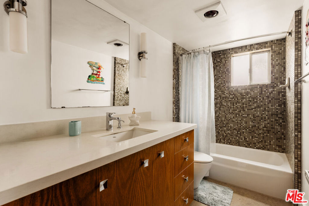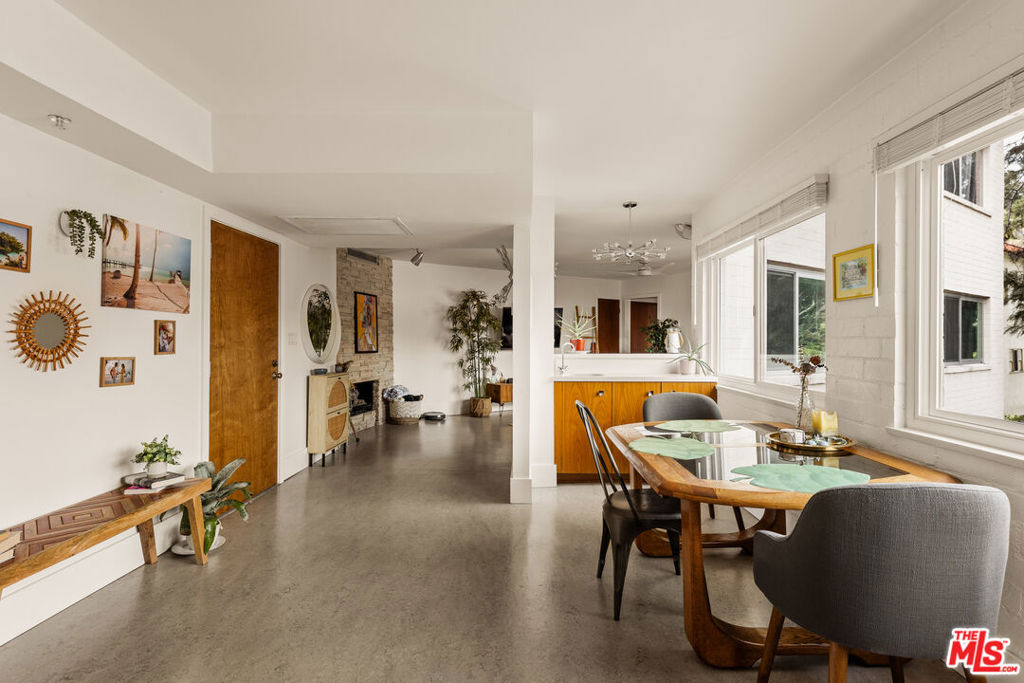 Set in the iconic Pilgrimage House, a distinctive 1965 mid-century building at the base of the Hollywood Hills, this residence reflects the architectural spirit of classic Los Angeles with its sweeping curved design and central courtyard. Inside, an open living and dining area is framed by large windows that bring in natural light and neighborhood views of the surrounding hills. The kitchen was thoughtfully remodeled in the late 1990s and features warm wood cabinetry paired with stainless steel appliances and a conduction cooktop, while the bathroom showcases floor-to-ceiling tile. Well-proportioned spaces create a comfortable and easy flow throughout the home. Pilgrimage House residents enjoy a pool, controlled access, and gated parking - hallmarks of a well-maintained mid-century community known for its quiet, peaceful setting. Located just north of Franklin Avenue at the base of the Hollywood Dell, the home places you moments from the Hollywood Bowl, the Walk of Fame, Runyon Canyon, and the vibrant dining and cultural energy of Hollywood. Nearby landmarks like Griffith Observatory and the illuminated Hollywood Cross further define this uniquely Los Angeles setting. This is more than a residence - it's a piece of Hollywood's mid-century heritage, thoughtfully preserved for modern living.