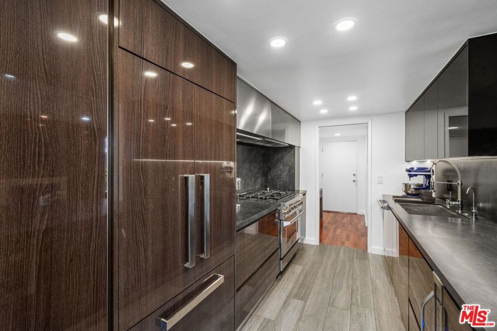 Experience luxury living in this exquisitely renovated condo nestled in the heart of West Los Angeles, offering unparalleled convenience in one of the city's most desirable neighborhoods, adjacent to Century City. Condo features top-of-the-line, custom-made finishes throughout. Enjoy breathtaking sunsets to the west and stunning views of Century City to the east. The unit seamlessly blends modern luxury with functional design. Key upgrades include: new high-end appliances: Fisher Paykel refrigerator, Viking dishwasher with stainless steel door, Z Line 36" commercial range, 46" commercial hood, and drawer microwave. Edgestar 7-bottle wine refrigerator. Italian industrial faucet. Tankless reverse osmosis water filtration system. Custom-made bathroom cabinets with integrated Quartstone sink/countertop made in France. Mirrors with LED lighting and defogger. Italian faucets and shower valves. New bathtub tiles and shower enclosure. Custom-made Italian closets made from melamine by Salt. Custom-made cabinets and paneling with hidden storage, made from panels by Alvi. Remote-controlled blinds. New LED ceiling lights. Come see these incredible updates.