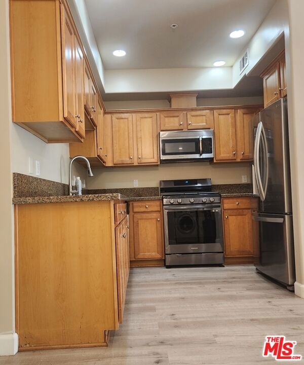 Modern Condo built in 2009. Very Convenient location close to DTLA, major freeways 10 & 110, LA Lives, Convention Center also shopping centers, banks, restaurants. This unit has spacious quiet patio for peaceful outdoor enjoying. Specially good for a family with kids or seniors. EV charger installed in parking space. 2 patio storage boxes included. Broker and agent does not guarantee accuracy of the unit/building info. Buyer to verify all the information of the unit/building.