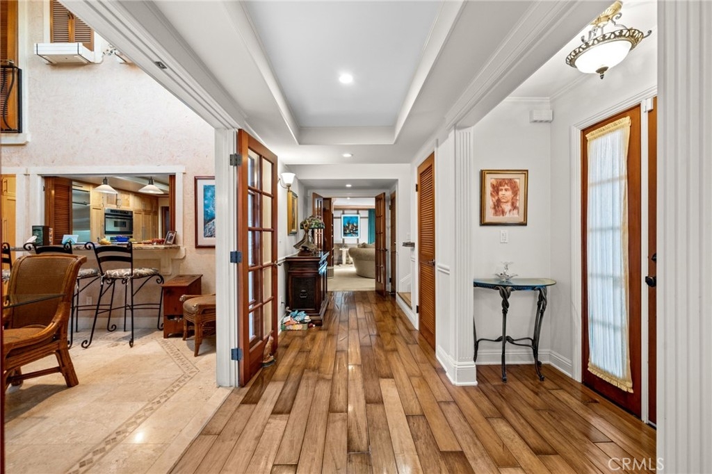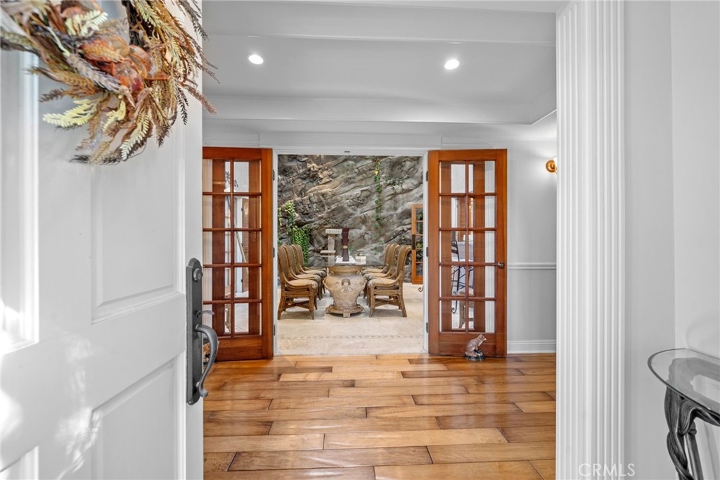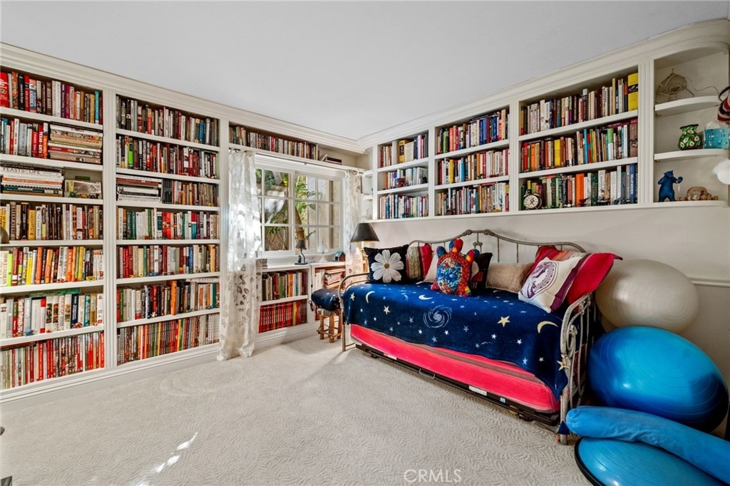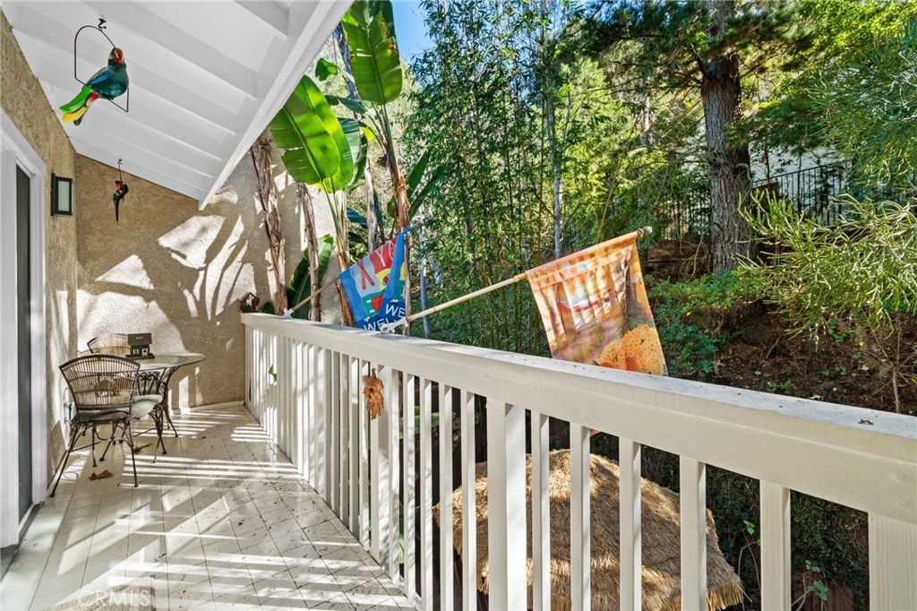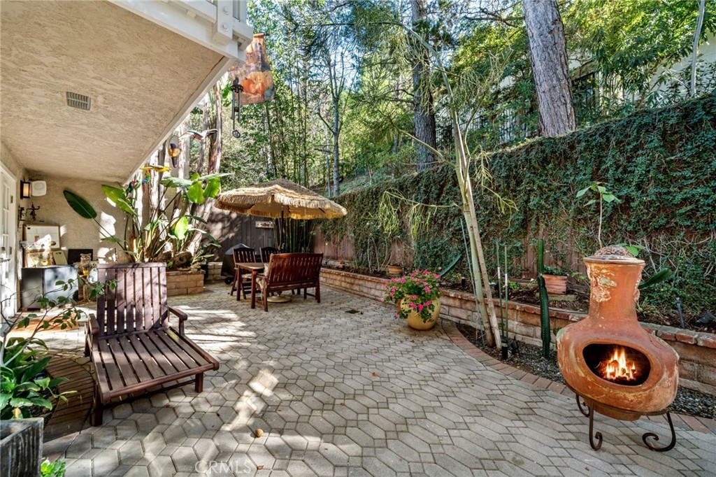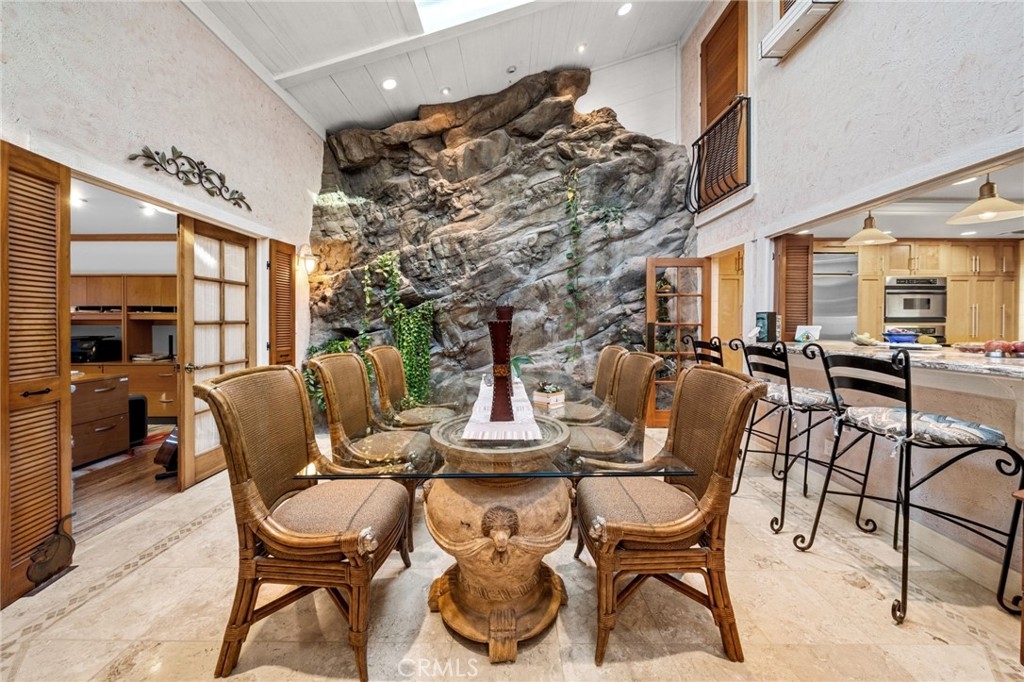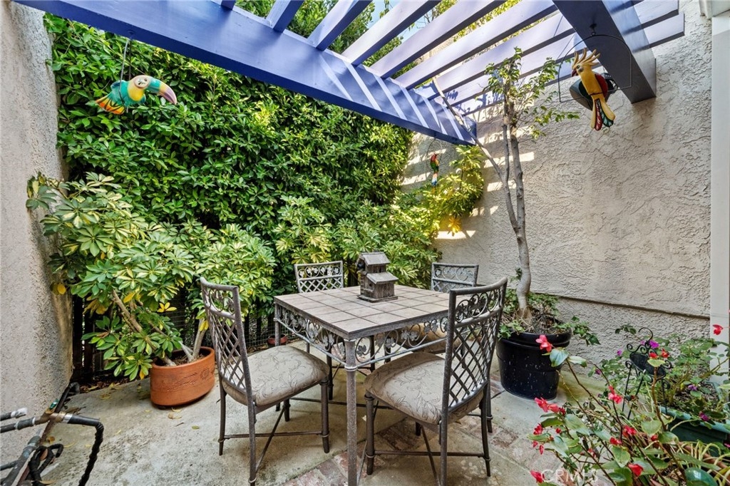 Tucked privately behind an expanse of greenery within the exclusive Bel Air Ridge community, this exceptional home offers a perfect blend of luxury, comfort, and convenience. Step inside to be greeted by your spacious atrium and dining area, its vaulted ceilings gleaming with natural light and complimented by a soothing custom waterfall. The adjacent space, currently utilized as a large office, makes for an ideal 3rd bedroom with its fireplace, French doors, and private patio. The kitchen opens directly to the dining room via bar-top and features Cambria quartz countertops, a ROHL sink, updated cabinetry, and stainless steel appliances. Step into the adjoining den with its built-in bar, custom wine rack, and direct access to the spacious yard, complete with pavers and shaded by trees. The main living room is an entertainer's dream having been upgraded to a home theater setup with integrated light and sound systems for the ultimate movie night experience. A powder room, laundry room, and direct access to the 2-car garage with built-in cabinetry and epoxy floors round out the downstairs area. Upstairs, the primary suite is a peaceful sanctuary with high ceilings, en-suite bath with dual vanities and soaking tub, a walk-in closet, and a private balcony with tranquil arboreal views. The ample second bedroom features direct access to a second full bath, ensuring privacy and comfort for family or guests. Bel Air Ridge offers a truly resort-style lifestyle with an array of amenities including 2 pools, a spa, 6 tennis courts, pickleball/basketball courts, racquetball court, a recreation room, gym, and Briarwood Park just steps from your door. Enjoy access to world-class shopping, dining, entertainment, and the award winning school district that includes Roscomare Road Elementary School. This well-maintained home comes with a comprehensive list of upgrade and maintenance details for your peace of mind. Schedule your showing today and make this exceptional property your own!