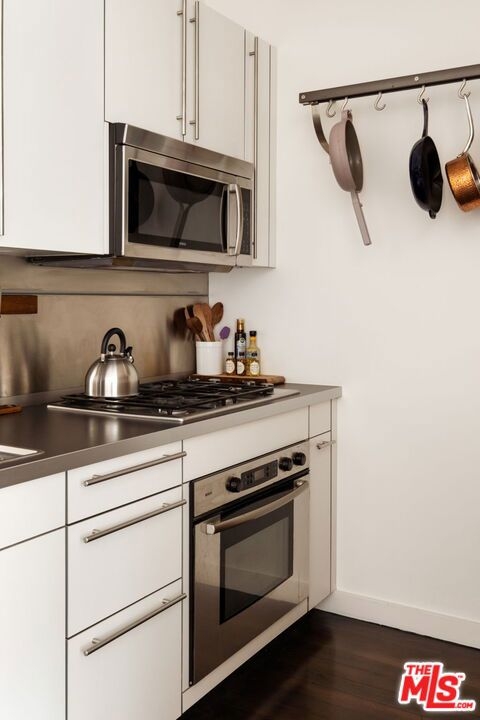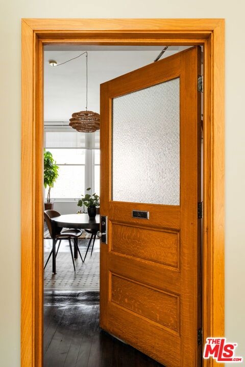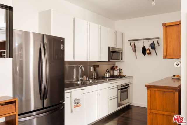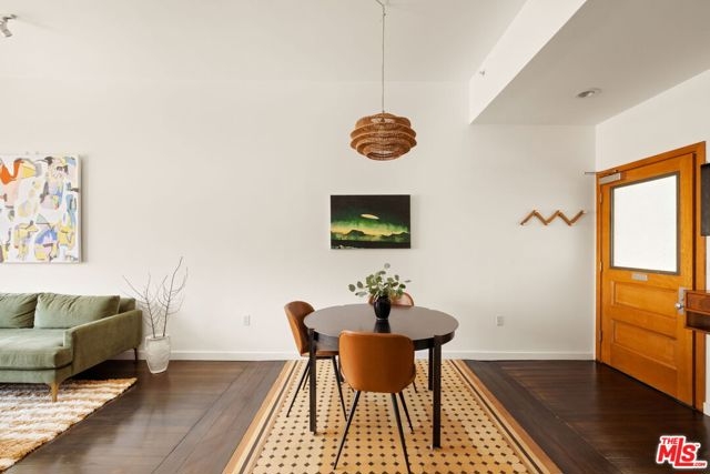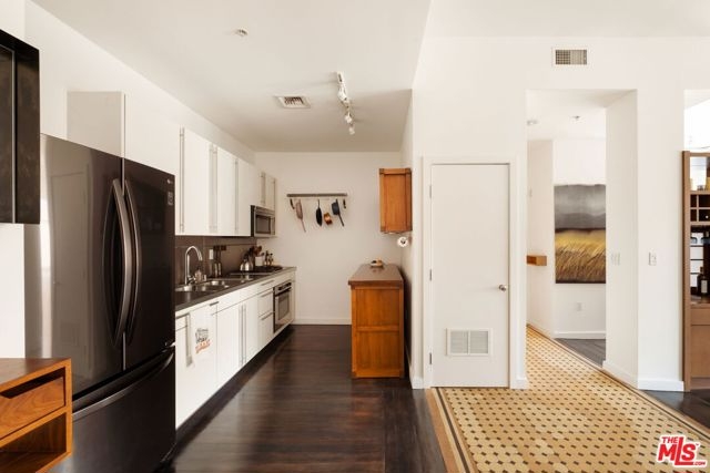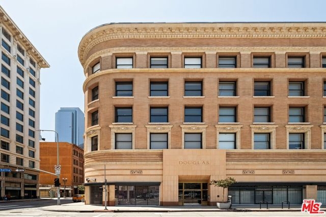 Chic & historical Downtown loft proudly representing a bygone era. This MILLS ACT property was originally built in 1899 - then thoughtfully renovated into 50 NY style live/work lofts in 2005. The DOUGLAS LOFTS were originally owned by a lumber baron turned real estate mogul, Thomas Douglas Stimson, who along with his family, restored many of the architectural details that adorn the property today. The heritage includes a grand entrance with ornate columns and a 20" high ceiling, a 2nd story skylight stretching to the roof, original marble treads and cast iron railings.Hundreds of double hung windows remain today with beauty and quality (a prize before air conditioning). The 710 Square ft loft with high ceilings allows for a flood of natural light. The unit lives like a much larger space! Enter through the old-school front door and enjoy the dark hardwood floors and period tile. Preserved double-hung windows with gorgeous hardware frame the North facing views. The Poggenpohl kitchen has modern tones, full-size appliances and offers plenty of room for your cooking delights. The spacious living room is adjoined by a dining area creating a comfortable atmosphere. A double-sided handcrafted wooden shelving unit acts as separation between the living room and bedroom: Containing a TV that swivels to the living room and bedroom, storage cabinets and open shelves for your displayable treasures. The bedroom is private and has a large wall-to-wall closet. Subway-tiled bathroom with full size tub /shower combo, built-in cabinets and a huge countertop. In-unit stacked laundry closet and Central AC/Heat. HOA fees include security from 3p-7a daily, water and trash.Inquire with LA1 about parking details. This unit comes with one rented space (not deeded), paid until the end of 2025. Residents enjoy a community spirit, having monthly gatherings at a wine bar. Pride of Ownership abounds. Walking distance to Grand Central Market, Disney concert Hall, City Hall, The Broad Museum, world-class dining and so much more.