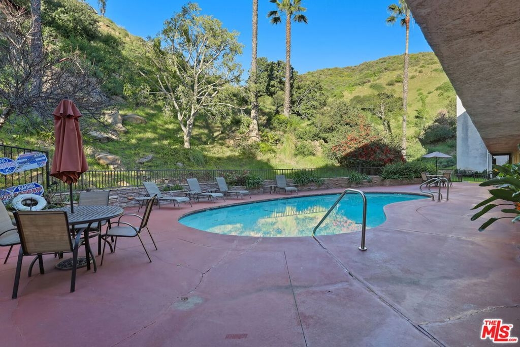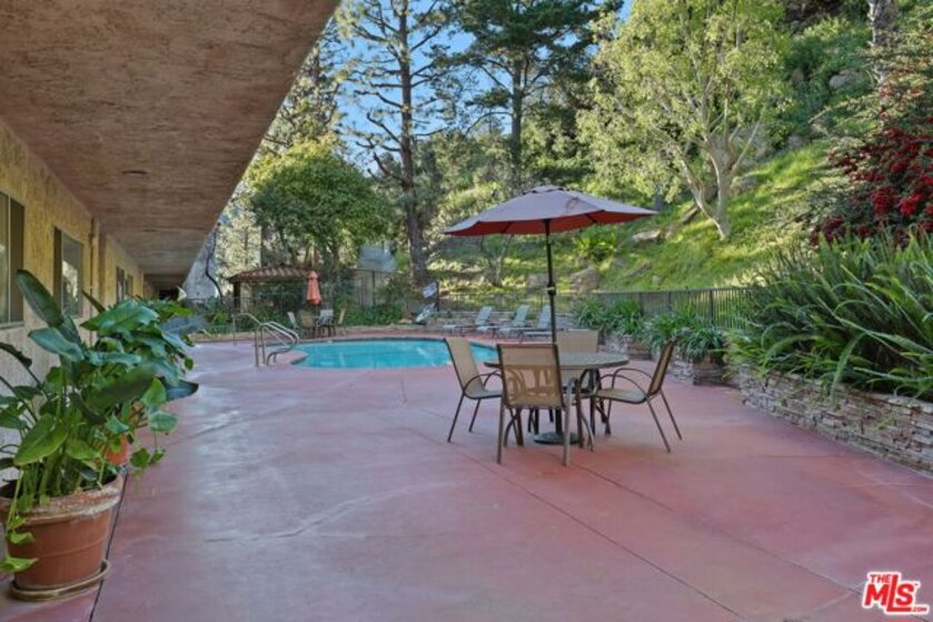 Set within the gated Cahuenga Hills Tennis Condominiums, this bright 1 bedroom, 1 bathroom condo offers a comfortable layout and private balcony in the Hollywood Hills. The open living and dining area is filled with natural light and extends to a balcony with greenery and mountain views, creating an easy indoor-outdoor flow. The kitchen connects seamlessly to the main living space, and the bedroom is generously sized with ample closet space. Residents enjoy access to 3 tennis courts, 2 pools, a spa sun deck, 2 fitness rooms, 2 saunas, rooftop deck, clubhouse, dog run, bike storage, assigned parking, guest parking, and hiking trails throughout the hills. HOA dues include cable TV, internet, water, trash, fire and earthquake insurance, landscaping, maintenance, onsite staff, and professional property management. Located near the Hollywood Bowl with convenient access to Hollywood, Toluca Lake, Burbank, and Studio City.