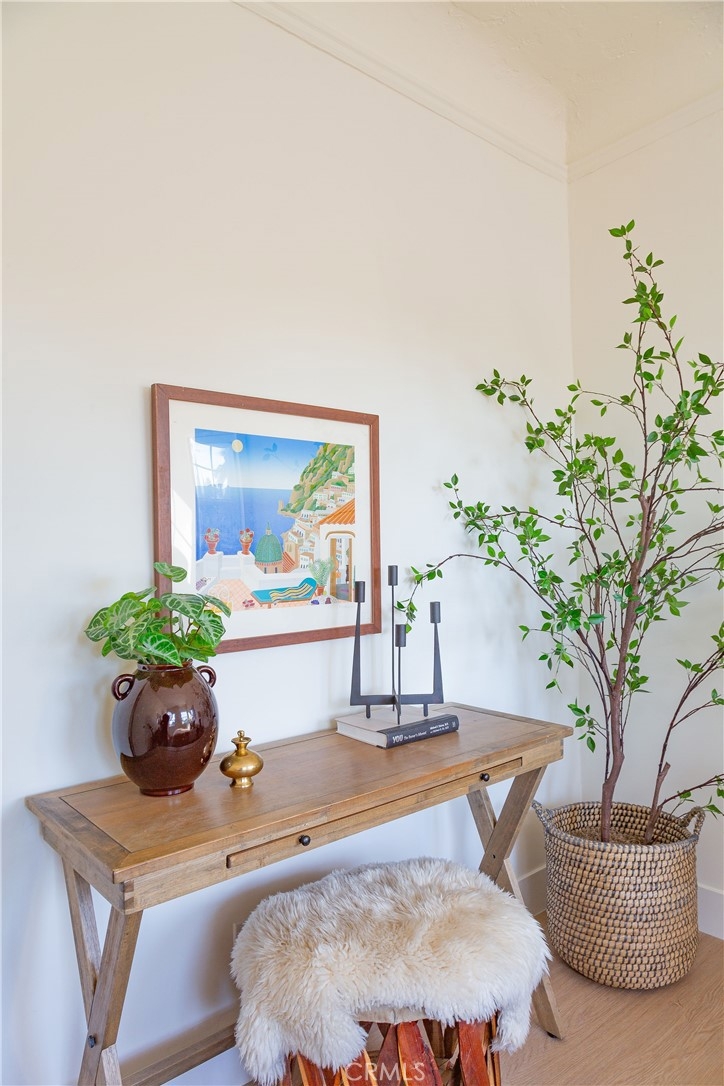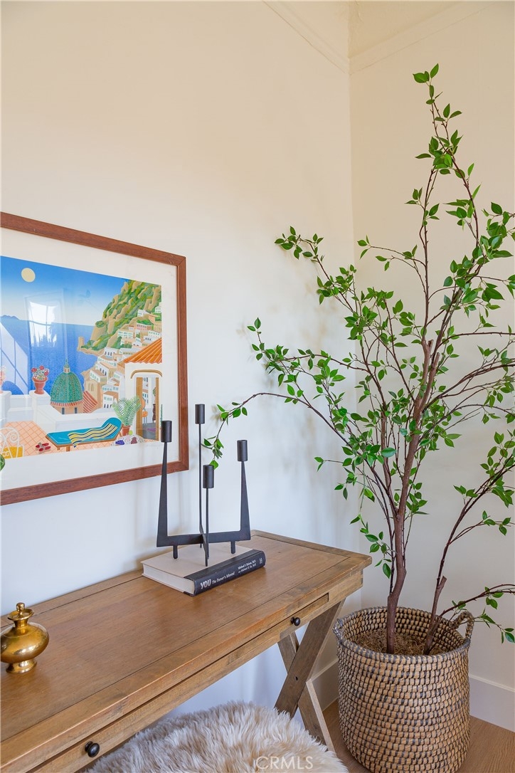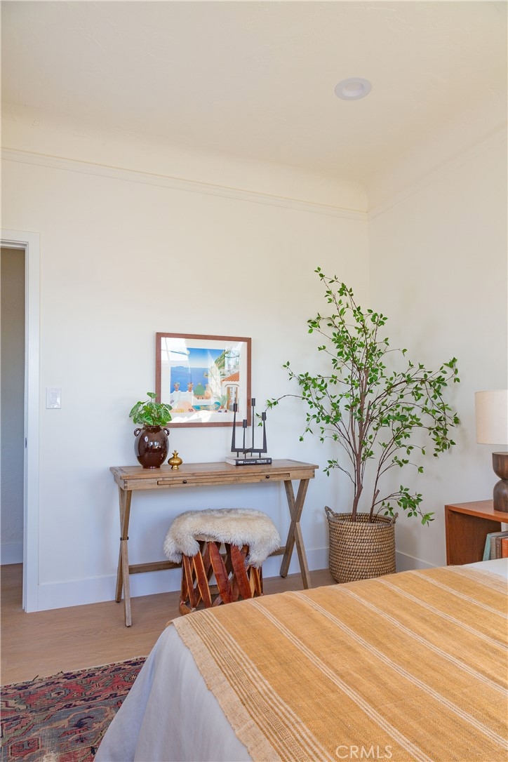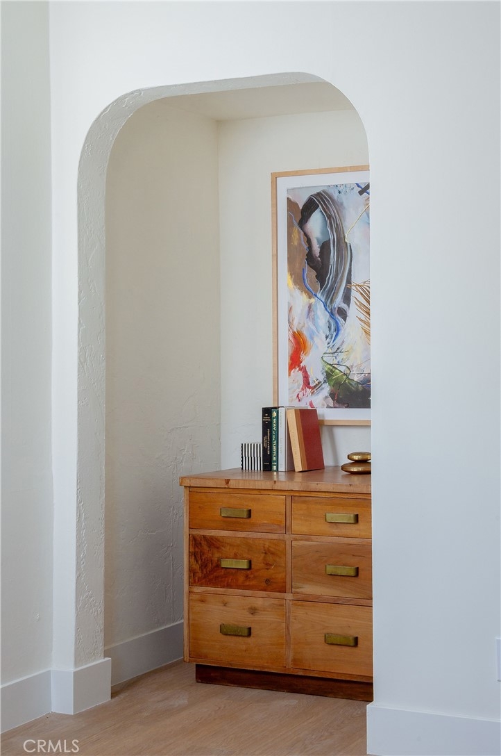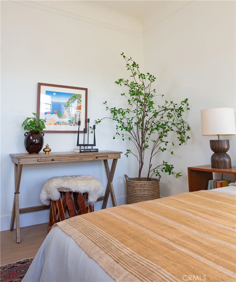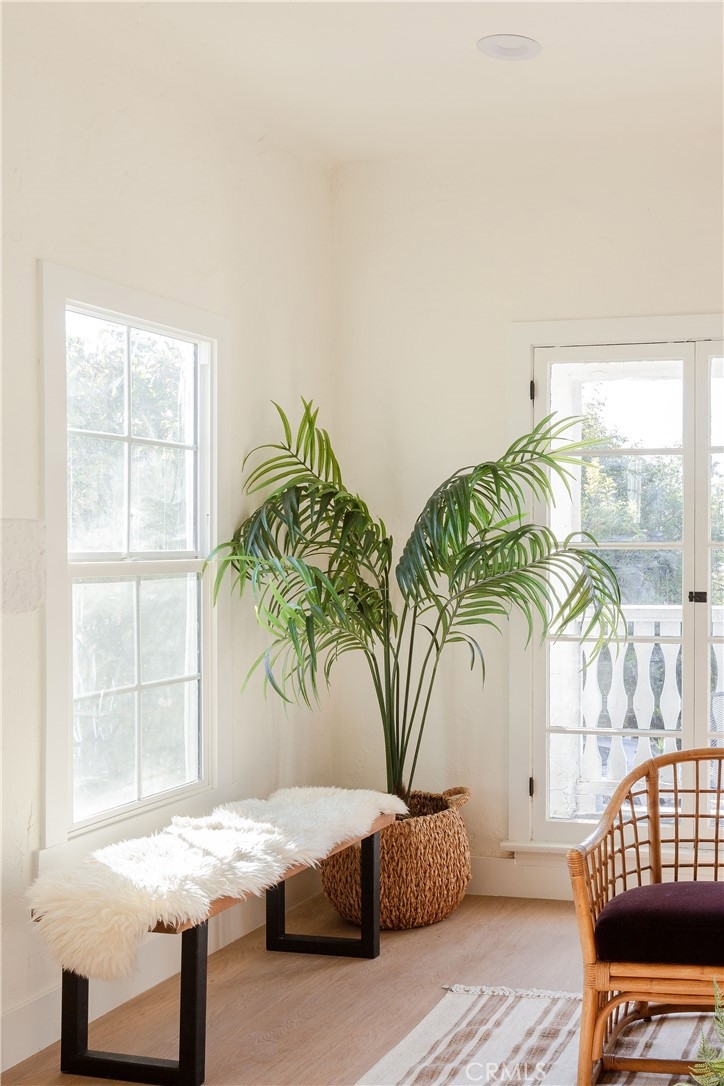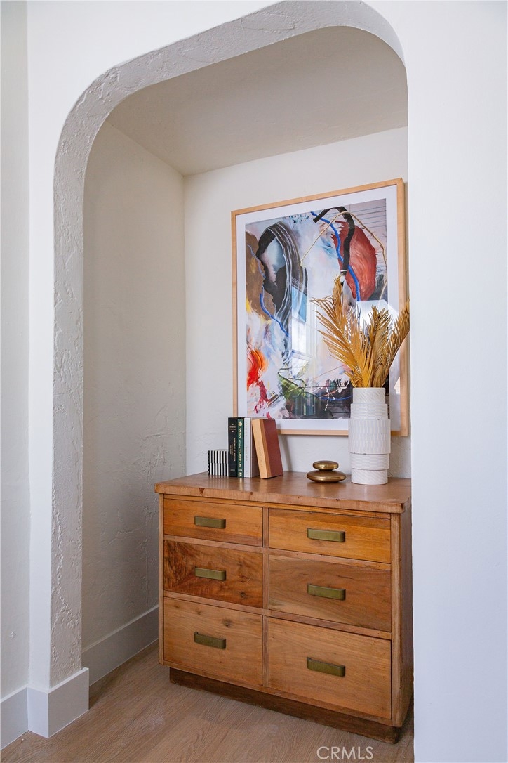Charming 1935 Spanish Revival in the Heart of West Adams-2 Bedroom, 1 Bath with a private balcony. Step into the timeless elegance of 1935 with this exquisitely preserved Spanish Revival unit, located in the coveted West Adams District. This 2-bedroom, 1-bath gem exudes character and historical charm, perfectly blending period style and modern comfort. From the moment you arrive, the architectural details transport you to a bygone era of craftsmanship, with every curve and corner thoughtfully designed to evoke a sense of history and sophistication. The unit’s facade, with its crisp white stucco exterior, terracotta tile roof, and soft blue accents, is a classic example of the Spanish Revival architecture that swept Los Angeles in the early 20th century. The unique arched windows adorned with decorative shutters invite sunlight to dance through the interiors, creating a warm and welcoming ambiance. These striking arched and semi-circular windows provide architectural interest and a perfect frame for the lush, tree-lined street views. Inside, the living room opens up with an airy, spacious feel, accentuated by high, textured ceilings and period-correct plaster walls that exude character. A sculpted decorative fireplace becomes the room’s focal point, reminding you of the home’s 1930s roots while adding a touch of romance to the space. New floors span the unit; their warmth sets the perfect backdrop for easy living, creating a seamless flow between rooms. A Thoughtful Blend of Vintage and Contemporary While maintaining its historic integrity, this unit has been updated for today’s lifestyle. The remodeled kitchen combines modern amenities with vintage-inspired cabinetry and fixtures that complement the unit’s original style. Large, classic windows line the walls, flooding each room with natural light and bringing out the rich tones of the interior design. The bathroom retains vintage charm with tasteful tilework that nods to the period style, harmonizing beautifully with the home’s overall aesthetic. This unit’s private front yard, framed by elegant, curved walls and lush landscaping, offers a charming outdoor space that feels secluded and inviting. Enjoy an evening on the front porch, overlooking the beautifully landscaped yard and appreciating the classic California sunsets. With easy access to West Adams’ trendy cafes, local shops, and cultural landmarks, this home offers a lifestyle that blends the best of historic LA charm with modern urban convenience.