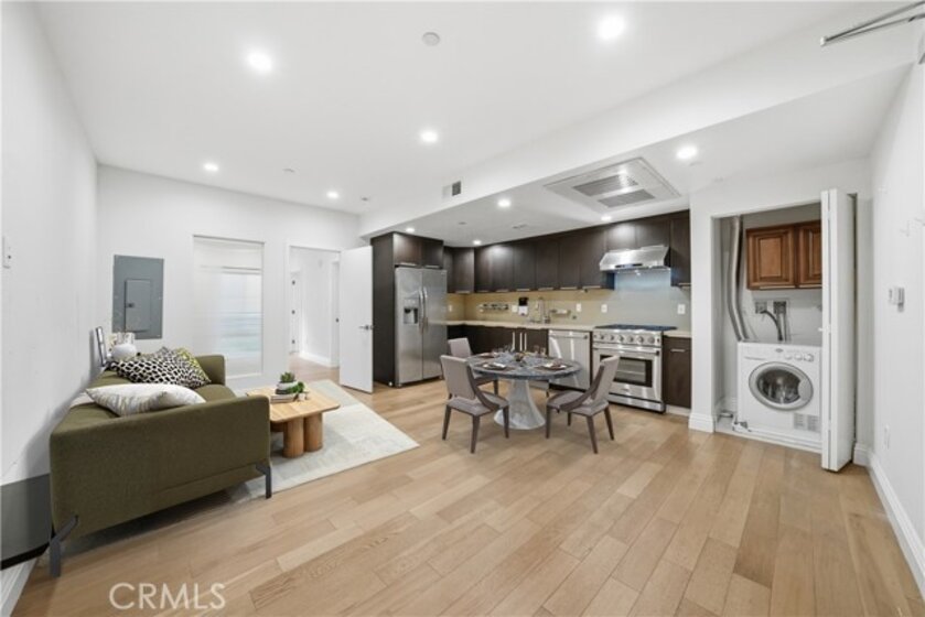 Experience stylish city living in one of LA’s most vibrant and dynamic neighborhoods! This beautifully updated modern condo offers 1 luxurious primary suite . Designed with both comfort and functionality in mind, the open-concept layout seamlessly connects the living, dining, and kitchen areas, creating the perfect space for entertaining or everyday living. The sleek, upgraded kitchen features stainless steel appliances, quartz countertops, and contemporary cabinetry that complement the home’s modern aesthetic. Additional highlights include recessed lighting, central air and heat, in-unit laundry. Enjoy peace of mind with 2 secured underground parking spaces and premium community amenities such as a sparkling swimming pool, recreation room, and a secured lobby entrance. Situated in the highly sought-after Koreatown neighborhood, you’ll be just minutes from Downtown LA, world-class dining, shopping, nightlife, and public transit.