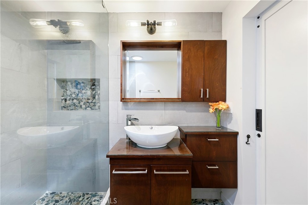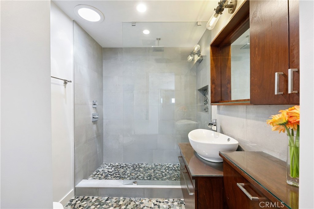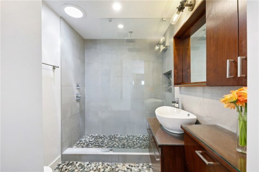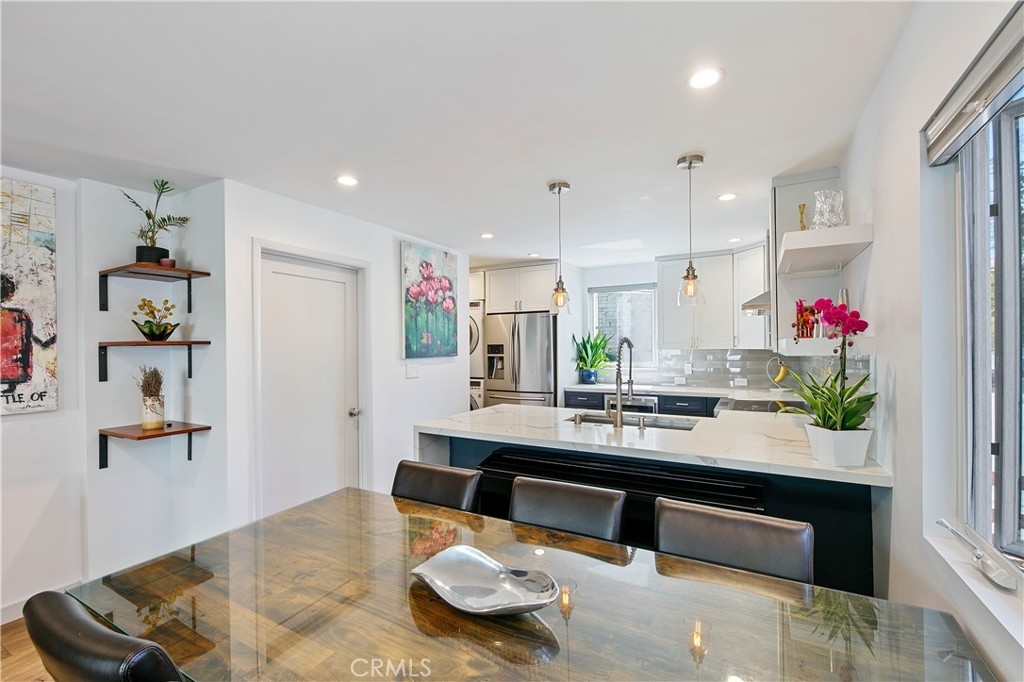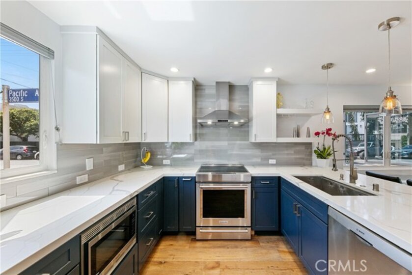 This beautiful end unit townhome is turnkey, just steps from the beach, and features a massive, private rooftop deck to take in the views, the sun, relax or entertain! As you enter into the stylish space, you’ll immediately fall in love with the open floor plan and the modern, updated fixtures. In the kitchen, you can enjoy 2 tone kitchen cabinets, stylish pendant lights, an oversized sink, quartz countertops with a waterfall island peninsula, stainless steel appliances and a full-size LG washer and dryer. The full bathroom downstairs features a large soaking tub, elegant tiling and a custom-built vanity. The bathroom upstairs feels like a spa oasis with river rock flooring, a walk-in waterfall shower with a frameless glass enclosure and a Solatube skylight. The property was renovated down to the studs in 2018 with new: plumbing, electrical wiring, sub-panel, windows, skylights, top-of-the-line Mitsubishi electric mini-split HVAC system (in every room), blackout shades, and Lutron smart light switches. The living room features an in-wall speaker system with L/R surround sound speakers and a hidden A/V storage space to keep electronics and wires out of sight. This 8-unit community also recently installed a new roof and gutters in 2024. Enjoy the two car tandem parking spots in the garage with an EV charger. And for nature lovers, you’ll be pleased to find out that the home is not only just steps from the beach but also only steps to a canal and designated wildlife preserve. Throughout the winter through the spring you are likely to spot Blue Herons, Cormorants, Canadian Geese, and Snowy Egrets among many other feathered friends. This is the life you’ve always dreamed about!