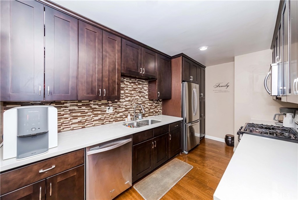 Must-see unit in the heart of the action! This affordable and spacious condo is located in the highly sought-after Hancock Park-Wilshire area. Situated in the desirable San Marcus building, this third-floor unit offers convenient elevator access and is move-in ready for its next owner. Featuring a generous 2-bedroom, 2-bathroom layout with one designated parking space, this condo boasts hardwood floors, dual-pane windows, and an updated kitchen and bathrooms. A highlight of the unit is its large private patio, accessible through dual sliding doors from both the kitchen and living room—perfect for indoor-outdoor living. The building offers great amenities, including a community pool and sauna with a shower booth. The HOA dues cover water, trash, gas, and sewer, providing added convenience. Located in a prime Hancock Park location, this home is just minutes from Larchmont Village, Hollywood, Downtown L.A., and more—offering easy access to shopping, dining, and entertainment. Don’t miss this incredible opportunity!