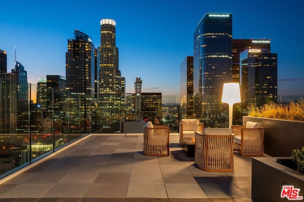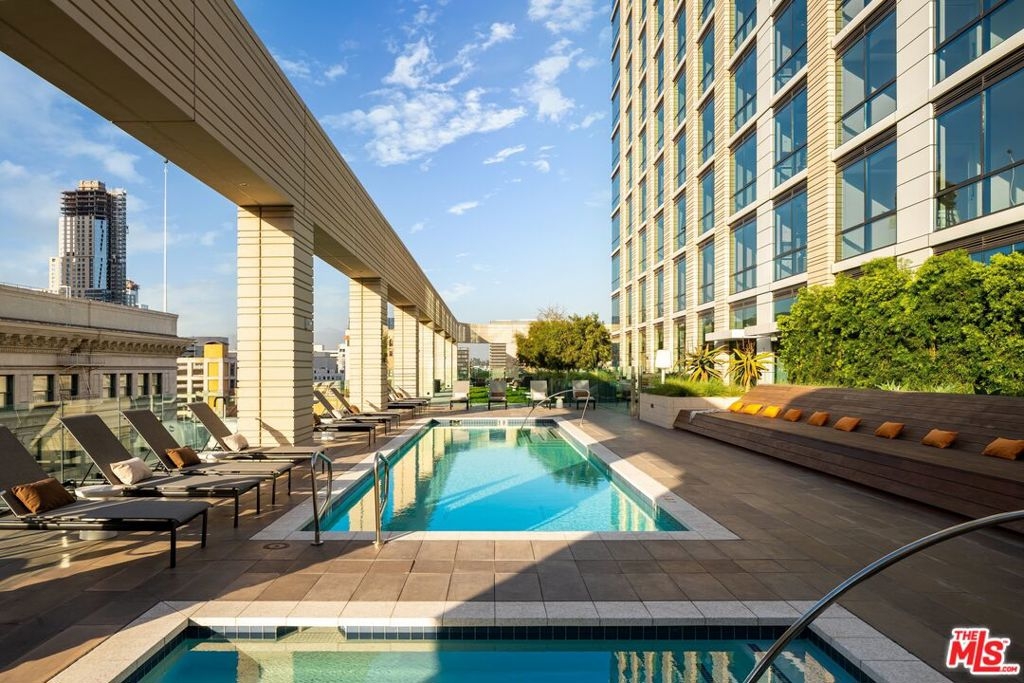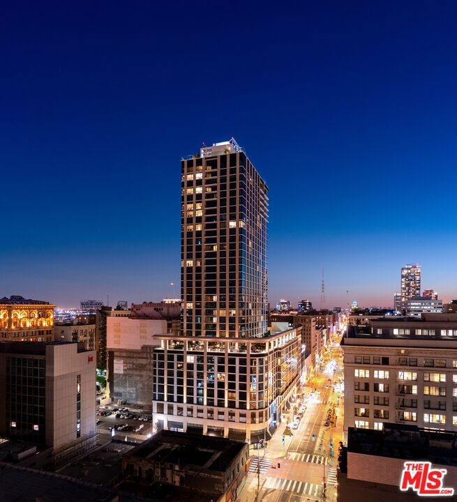 Welcome to this stunning 1 bedroom home at Perla, a luxury condominium offering residents a prime Broadway address and a collection of lavish lifestyle amenities tailored to modern Los Angeles living. The apartment is an exemplar of contemporary urban design, with warm organic tones providing a fresh palette for any style. Floor-to-ceiling windows frame incredible views of San Gabriel, Hollywood Hills, or the Downtown LA skyline. Natural light spills onto European white oak floors, and a Bosch washer/dryer, fiber optic pre-wiring, and energy-efficient LED lighting are thoughtful finishing touches. Past a tasteful entry gallery adorned with a convenient coat closet, the home flows into a spacious living, sleeping, and kitchen area saturated with natural light. The kitchen is equipped with polished quartz countertops, a porcelain tile backsplash, and a suite of high-end fully integrated stainless steel appliances from Bertazzoni. The bathroom features designer-selected tile, contemporary wood cabinetry, and illuminated mirrored medicine cabinet, polished chrome fixtures from Kohler, and a deep soaking tub. Nestled in the heart of the Historic Core, Perla rises 35 stories and blends urban chic with Art Deco charm. Perla's incredible amenities offering spans 44,000 sq. ft. and unfurls around an airy four-story atrium graced with multiple seating areas and suffused with natural light. Residents can relax or entertain in a gaming lounge, wine tasting room, private theater, library lounge, or Clubroom with a full kitchen and adjacent dining space. Work-from-home options are plentiful with several meeting areas and workspaces. A trio of landscaped terraces offer communal grilling stations, fireplace lounge seating, an outdoor pool, and chaise seating. Fitness enthusiasts will enjoy a fully equipped gym, a yoga studio, and a rooftop yoga and stretching deck. Pet owners are sure to make use of the pet spa and dog park. The building is surrounded by city landmarks, cultural institutions, and dozens of trendy dining and shopping options. Grand Central Market and the acclaimed Bradbury Building are just down the street, while The Museum of Contemporary Art, Regent Theater, Walt Disney Concert Hall, Pershing Square, and Grand Park are all close by. An accessible LA Metro line makes getting around the rest of the city quick and convenient.