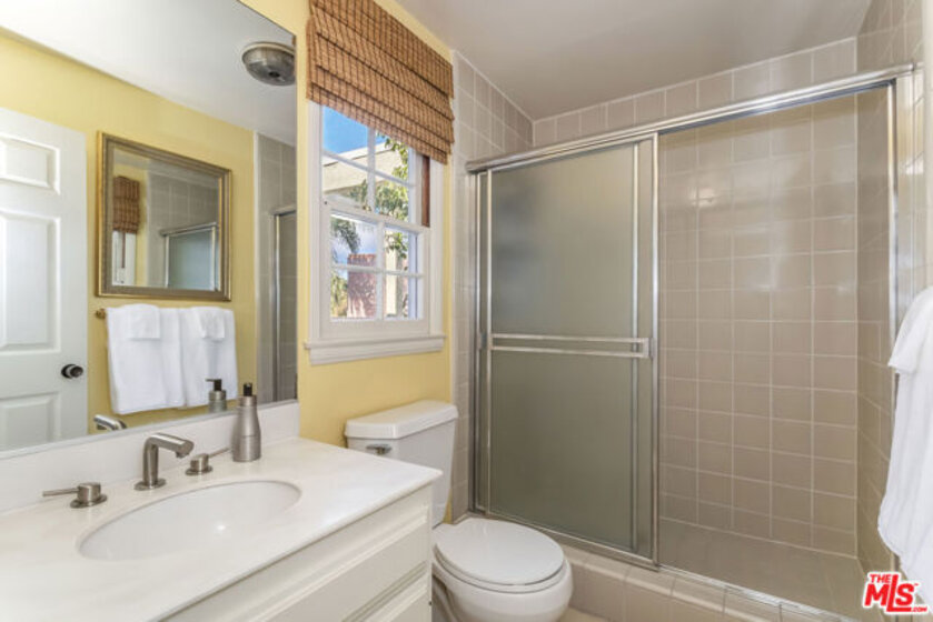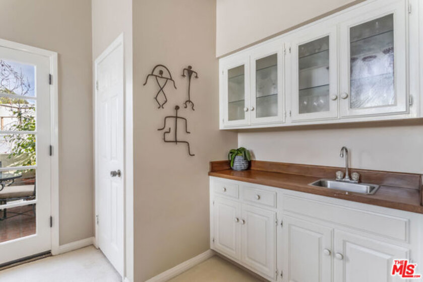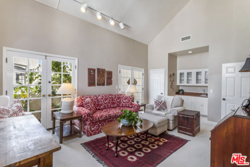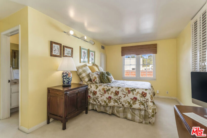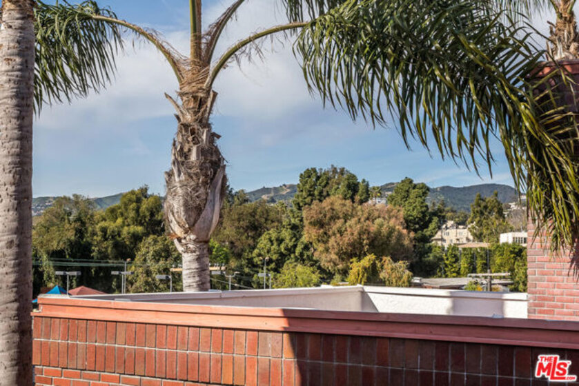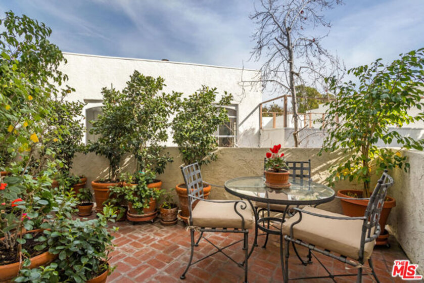 Tucked above the treetops, this enchanting Kensington meets Brentwood penthouse feels worlds away offering a rare garden retreat defined by soaring 18-foot ceilings, elegant proportions, and lush green outlooks from nearly every room. Bathed in natural light, the home unfolds with an exceptional floor plan designed for both intimate living and refined entertaining. Tall, multi-pane windows frame leafy canopies, while classic architectural lines and generous wall height create an unmistakable sense of grace and volume. The living and dining spaces are anchored by timeless finishes, blending soft carpeting with hardwood and tile for a layered, comfortable elegance. French doors open to two private terraces, each surrounded by greenery perfect for morning coffee, evening wine, or quiet reflection among the trees. The primary suite is a true sanctuary, offering substantial square footage, expansive closet space, and a tranquil ambiance rarely found in penthouse living. Throughout the home, thoughtful storage, classic detailing, and modern appliances strike a seamless balance between charm and function. Set within a beautifully landscaped, storybook building, this residence offers a rare combination of privacy, romance, and scale a penthouse that feels more like a private garden estate in the sky.