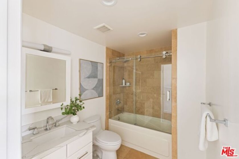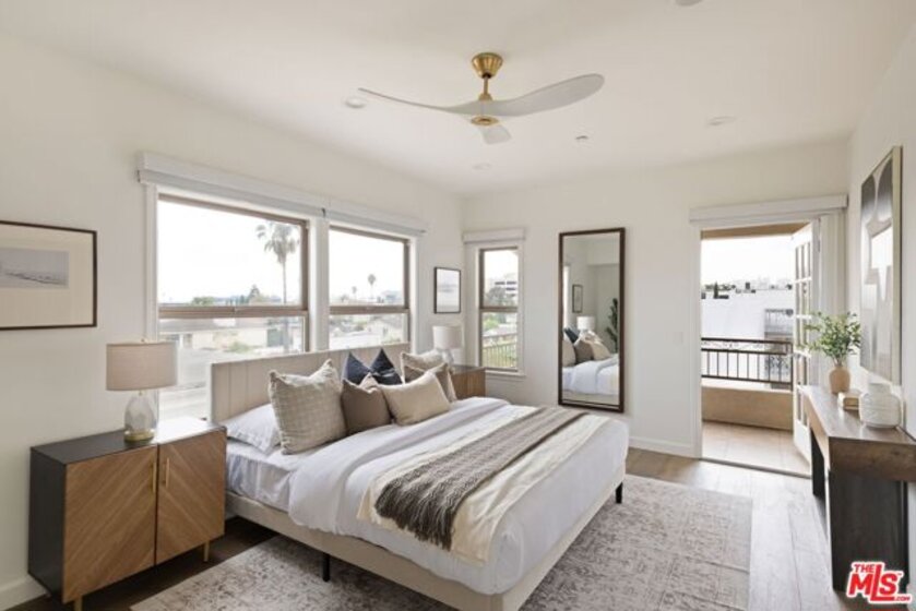 This stunning penthouse blends privacy, luxury, and a premier location. Built in 2008, the residence boasts no shared walls, abundant natural light, and a spacious layout with 3 bedrooms, 3.5 bathrooms, a versatile bonus room/office or 4th bedroom, and three private patios. The open-concept living and dining area is ideal for entertaining, complete with a wet bar, wood floors, recessed lighting, and a cozy fireplace. The chef's kitchen is appointed with stainless-steel appliances, and counter seating. The oversized primary suite opens to a west-facing balcony and offers a spa-like bathroom with dual sinks, a soaking tub, a separate shower, and two walk-in closets. A second primary suite features its own east-facing patio and a third bedroom, both of which are en-suite with generous walk-in closets Additional amenities include custom window treatments, ceiling fans, dual-zone HVAC, a spacious laundry room with washer and dryer, and two secure underground side-by-side parking spaces plus guest parking. Residents also enjoy access to a rooftop deck with sweeping city and mountain views. Perfectly situated moments from Cedars-Sinai, Robertson Blvd., 3rd Street, Burton Way, The Grove, Rodeo Drive, and the world-class dining and shopping of Beverly Hills and West Hollywood. This penthouse delivers sophistication, convenience, and an unparalleled lifestyle.