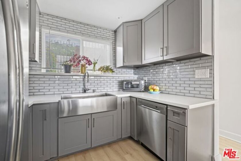 One of the BEST VIEWS in Los Angeles!!! Welcome to this beautifully updated 2-bedroom, 1.5-bath townhouse in Baldwin Hills. This recently renovated unit offers style, comfort and stunning views, all spread across two spacious levels. Perfectly situated to capture natural light and scenic surroundings, this home boasts a bright and airy layout with an open-concept main floor. As you enter the property you walk through a welcoming enclosed front patio perfect for work from home days or morning coffee. The entryway has a high ceiling and beautiful Travertine tile. The room opens up to an updated spacious modern kitchen, with a stylish countertop and modern backsplash tile selection. There is an open concept dining area that flows into a sophisticated living room with a stunning new custom-built Italian marble fireplace capable of putting out 15,000 BTU's of heat. Your large private balcony has sliding glass windows that offers sweeping views of the Hollywood Hills. Last but not least, the 1st floor powder room feels more like an art gallery! It's elevated by bold tile work showcasing texture and muted jewel tones. Upstairs, two generously sized bedrooms provide privacy and comfort, along with a full bath conveniently located between them. The primary bedroom also has views of the city and has great airflow because of the expansive windows.Additional highlights include ample storage and a two car garage. This Baldwin Hills townhouse is located in a desirable close-knit community with easy access to multiple parks, one of them being Kenneth Hahn Park. This location is perfect with lots of street parking for guests! Baldwin Hills is 15 minutes away from LAX, 10 minutes away from Culver City, 25 minutes away from the beach. and approximately 25 minutes away from Downtown LA.