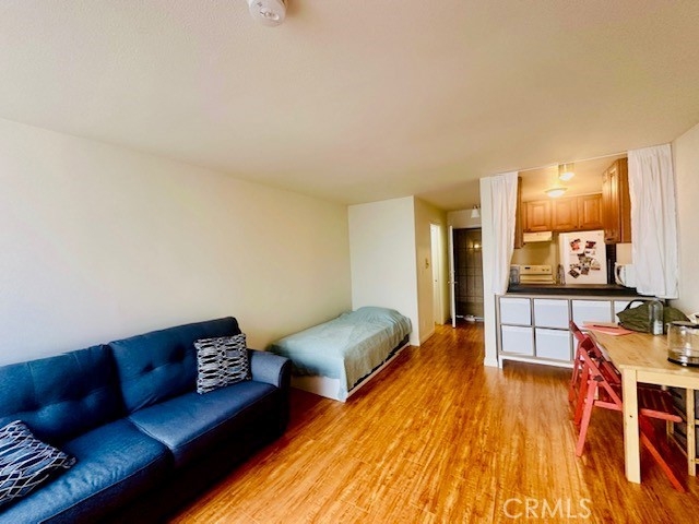 COZY STUDIO IN THE HEART OF KOREA TOWN. Located in a highly walk-able location, you'll have easy access to some of the best nightlife, restaurants, and shopping in the city. You're just minutes from Downtown Los Angeles, Silver Lake, Hollywood, and Beverly Hills, allowing you to experience everything Los Angeles has to offer. The loft studio room features a generously sized living studio with laminated wood flooring, large double insulated window which provides a ton of natural light, open kitchen with full-size range and refrigerator, with room for bar stools. A full bathroom with tub and shower combo and two good size closets. This unit features a dual air conditioning and heating unit, ensuring that you're always comfortable no matter the season. The building amenities include an in-ground spa, fitness center, laundry facility, gated parking garage (1- assigned space) Water, Trash. LOW HOA . This property can also generate $1500 per month rent for an investment. Please note, the county assessor says "1 bedroom" but unit is a studio.