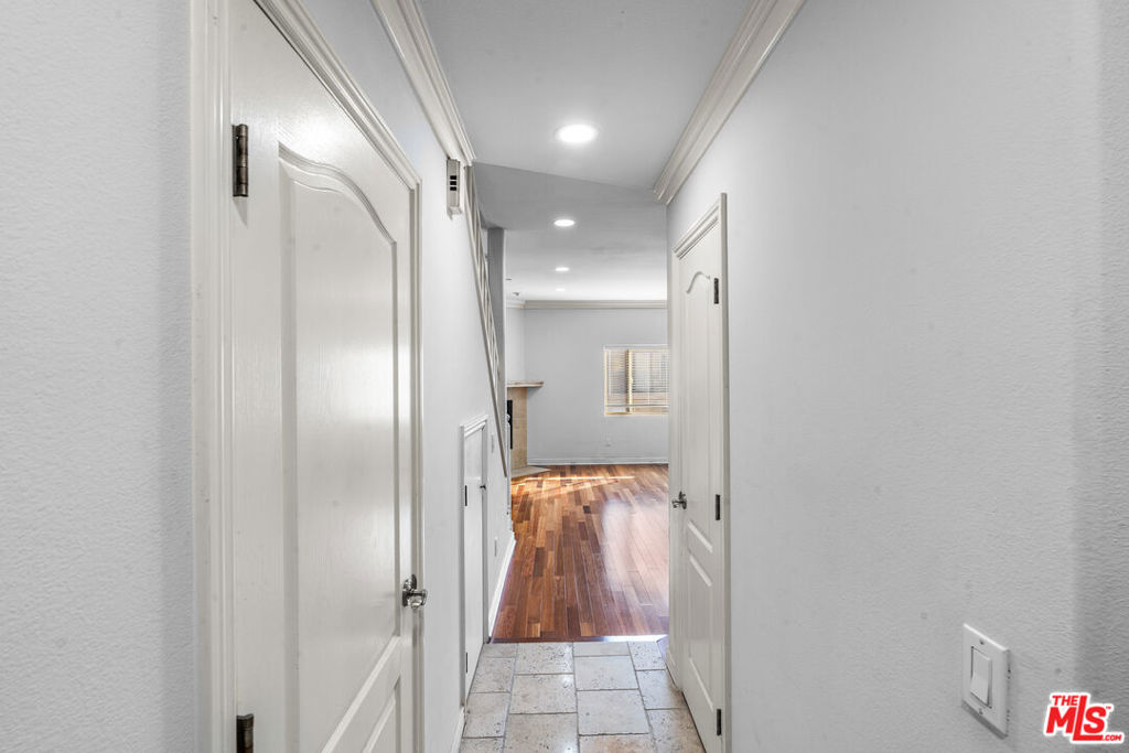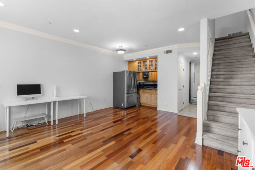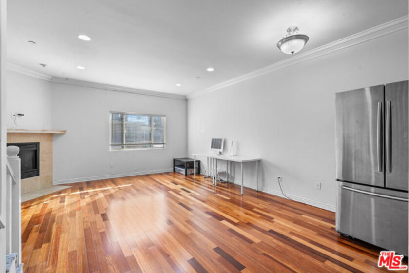 Set in East Hollywood just moments from the vibrant Virgil Village dining scene, this rarely available townhome-style condo offers a unique opportunity in an area where condos are few and far between. Surrounded by local favorites such as Courage Bagels, Doto, and Budonoki, the neighborhood continues to evolve with new restaurants, cafs, and shops, making it an exciting place to call home. Located at the edge of Silver Lake with easy access to the 101 Freeway (north & south), this home combines convenience with urban lifestyle appeal.This modernized two-story residence features 2 bedrooms and 2.5 bathrooms with an open living area highlighted by recessed lighting, hardwood floors, crown moldings, and a cozy gas fireplace. The kitchen is bright and well-ventilated with its own window, and offers granite countertops, stainless steel appliances, abundant cabinetry, a breakfast bar, and travertine tile finishes. A convenient half bathroom on the first level provides easy access for guests or for use while enjoying the main living space.Both upstairs bedrooms feature en-suite bathrooms, windows for natural light, and pleasant open views. The primary suite includes a private balcony and generous closet space, creating a comfortable retreat. Additional highlights include central A/C and heat, a second-floor laundry area with in-unit washer and dryer, extra storage under the staircase, and two underground tandem parking spaces. Notably, the water heater and washer/dryer have been recently replaced, offering added value and peace of mind.A community patio area and pet-friendly HOA complete this exceptional offering in a highly convenient and sought-after location.