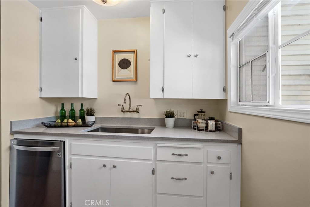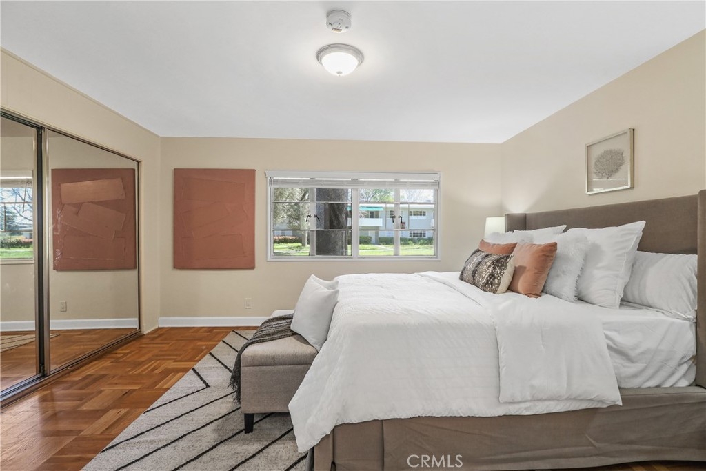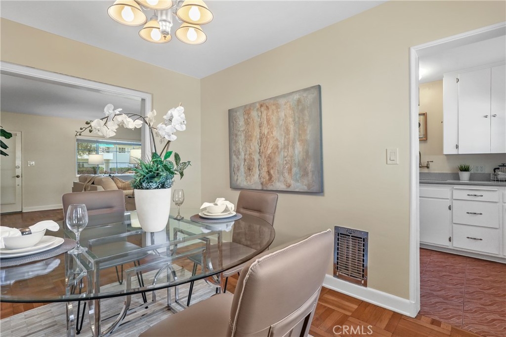 Welcome to a one-of-a-kind 1 bedroom/1 bathroom unit situated in the distinguished and historic Village Green community, recipient of the prestigious Award of Excellence. Offering over 1,000 square feet of living space, this unit boasts the largest 1 bedroom floor plan and is infused with a wealth of charm and special features. Upon entering, the stunning hardwood flooring immediately catches your eye, leading seamlessly into the dining area with access to the ideal entertainer's patio. The kitchen has been recently updated with custom quartz countertops and state of the art stainless steel appliances, providing a fresh and modern touch. The generously sized bedroom features new mirrored wardrobe closet doors and an additional closet, offering ample storage space. The charming bathroom boasts a separate shower and tub, providing ultimate relaxation. Additionally, this home offers a 1-car garage and extra parking, a true rarity in this community. Village Green boasts 64 acres of land, including a clubhouse, live entertainment in the Center Green, on-site management, and expertly maintained landscaping by an arborist. Situated in a prime location, this community offers easy access to freeways, shopping, and everything else you may need. Certified Historic - MILLS ACT in place saving you Property Tax Fees. Don't miss the opportunity to make this lovely home yours today.