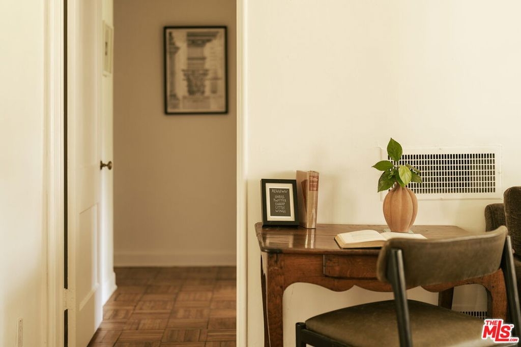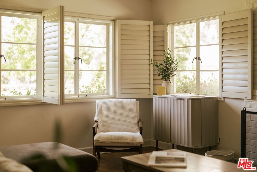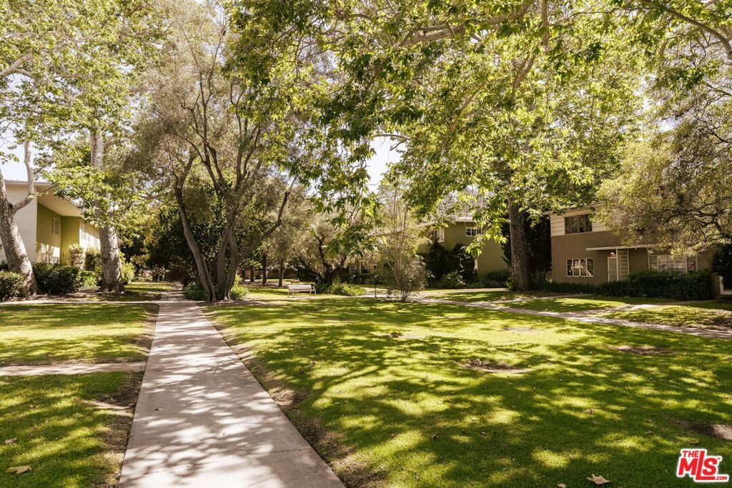 Bungalow cottage in the center Green, available for the first time in 35 years! Vintage charm like you have never seen before. Interior, center Green placement in Court 7, one of the most coveted positions in the Village Green. With only one shared wall and windows on three sides, the home reads like a standalone residence, oriented toward uninterrupted greenbelt views from every room. This is not a condo that tries to feel like a home. It simply is one. A private, gated patio sets the tone on arrival lush, quiet, and designed as a true outdoor room, complete with a bubbling fountain that draws in birds and soft movement throughout the day. Inside, the living room is anchored by a maintained fireplace, while the updated modern farmhouse kitchen balances clean lines with warmth. The bath leans spa-like, finished with a rain shower. Every space feels intentional, calm, and connected to the surrounding landscape. Come to the cottage of all cottages. Located in the center of the highly sought-after Village Green, a National Historic Landmark spanning 68 acres of curated, park-like grounds. This home includes a private, covered one-car garage and access to a community defined by thoughtful planning and long-term stewardship with 24-hour security, on-site maintenance and landscaping crews, and regular neighborhood events. Positioned moments from the Metro, minutes to downtown Culver City, and centrally connected to the rest of Los Angeles.A rare opportunity to own one of the best-situated homes within the Green quiet, interior, and exactly where you want to be.