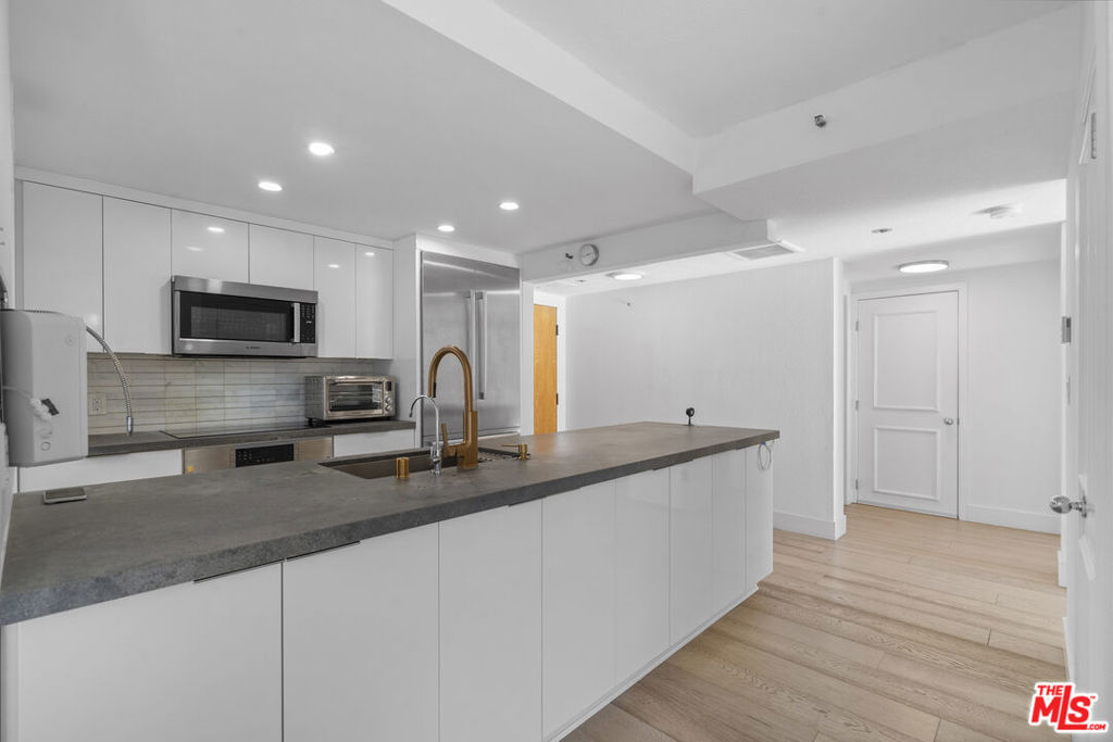 Welcome to The Skyline, a premier full-service high-rise in DTLA offering resort-style living with 24-hour security and controlled access. This beautifully updated south-facing residence is filled with natural light, creating a bright and open living environment. Thoughtfully remodeled for modern city living, the home features engineered wood flooring, upgraded cabinetry throughout, and stylishly renovated kitchen and bathrooms that balance design and functionality. The chef's kitchen is equipped with premium built-in appliances, delivering a clean and contemporary aesthetic. Enjoy sweeping panoramic views of the Downtown skyline and city lights, along with abundant built-in storage and a highly functional floor plan. This turnkey residence is move-in ready and includes two side-by-side parking spaces. Residents have access to a full suite of amenities, including a pool, fitness center, clubhouse, BBQ area, and beautifully landscaped walkways. Conveniently located near major freeways and just minutes from dining, shopping, and public transit, this home offers both comfort and accessibility. A rare opportunity to own a refined urban residence combining luxury, convenience, and iconic DTLA views.