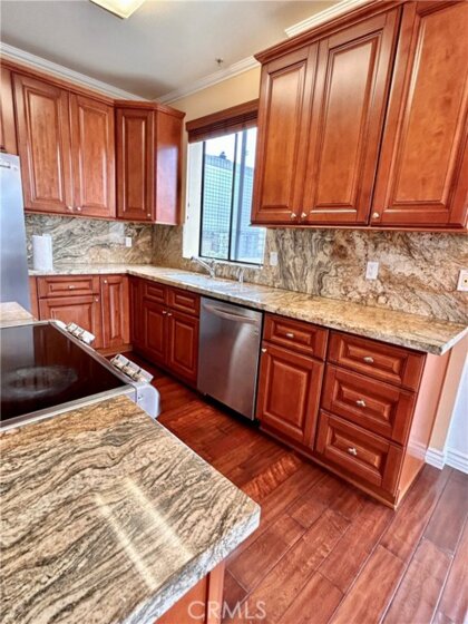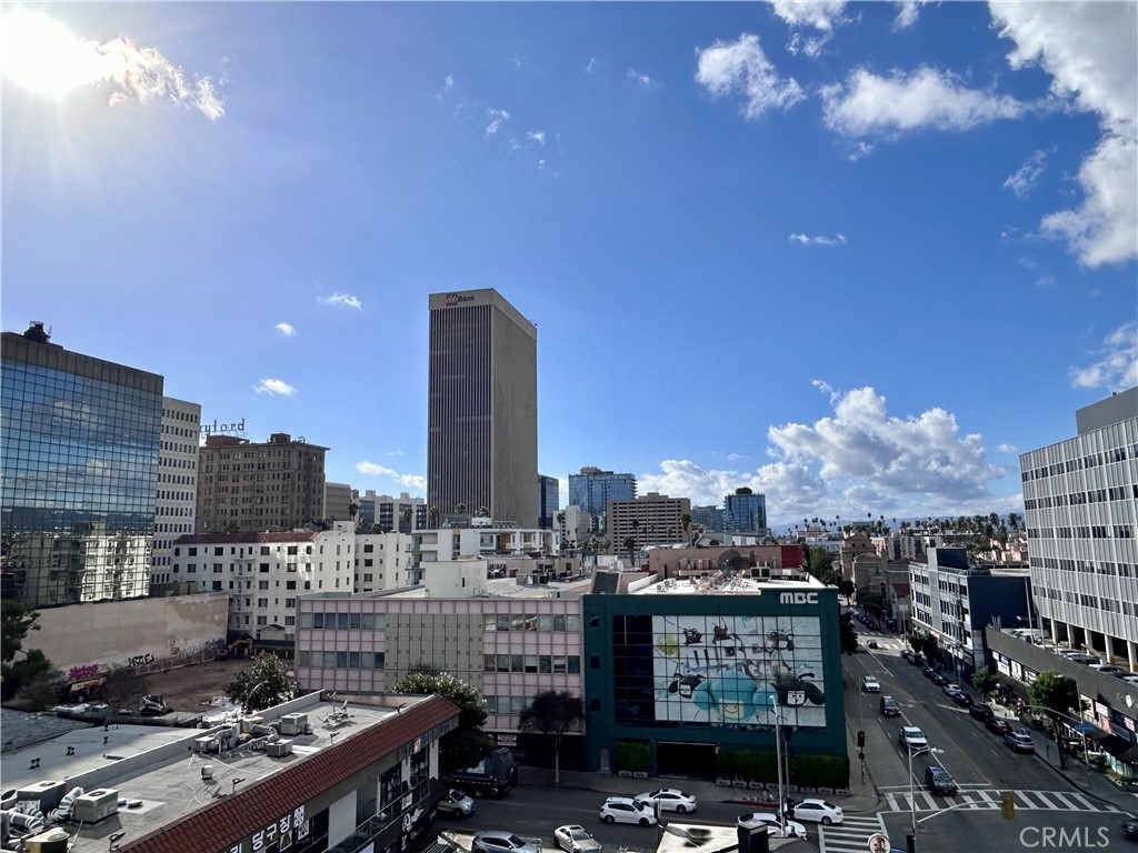 Beautiful light and bright Big 3 bedroom unit on the quiet side of the building with amazing views of the mountains and Hollywood sign. Barcelona Towers Corner unit with low HOA, 5th floor large 3 bedroom, 2 bath condo in a very desirable high security building in Mid Wilshire. This almost penthouse unit features hardwood floors, granite counters, high ceilings, low monthly HOA and amazing views of the Westside, the Hollywood sign and beyond.