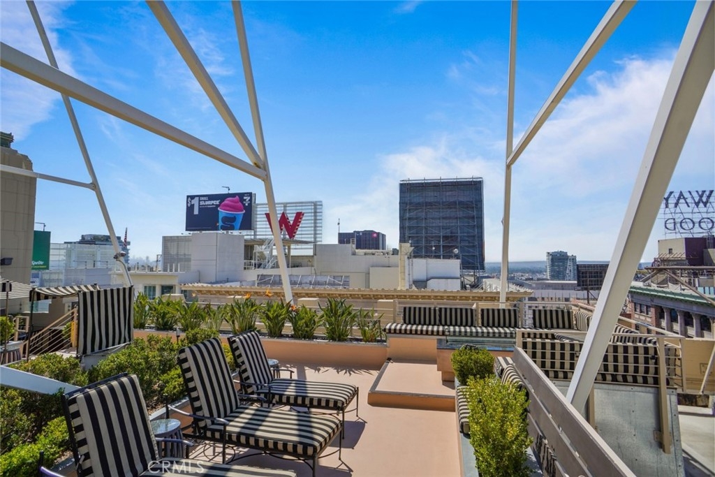Step into a piece of Hollywood history in Unit 309 at The Lofts @ Hollywood and Vine. This one-bedroom, one-bathroom loft offers an open and spacious layout, designed to maximize style and functionality. With stunning views of iconic landmarks like the Capitol Records Building, the Hollywood Sign, and Griffith Observatory, every glance out the window is a reminder of the city’s rich heritage. The chef's kitchen is a standout, featuring professional-grade Viking appliances, including a stainless steel range w/hood, built-in refrigerator, and dishwasher. The bedroom offers sophistication and comfort with a large walk in closet and built-in drawers. The spa-like bathroom includes a walk-in shower and dual vanity. Enjoy contemporary elegance in this full-service building, complete with a 24-hour security & doorman. The rooftop deck, offering 360-degree views, a fire-pit, and BBQ, is perfect for entertaining or relaxing after a long day. Situated next to some of Hollywood’s best attractions—like Katsuya, the W Hotel, and Trader Joe’s—and with the Metro Redline nearby for a quick commute to DTLA, this loft combines luxury, convenience, and culture. As a Mills Act Building, the property also offers significant property tax savings and eligibility for The Homerun Affordable Loan Program, making this loft not only a stylish choice but a smart investment.