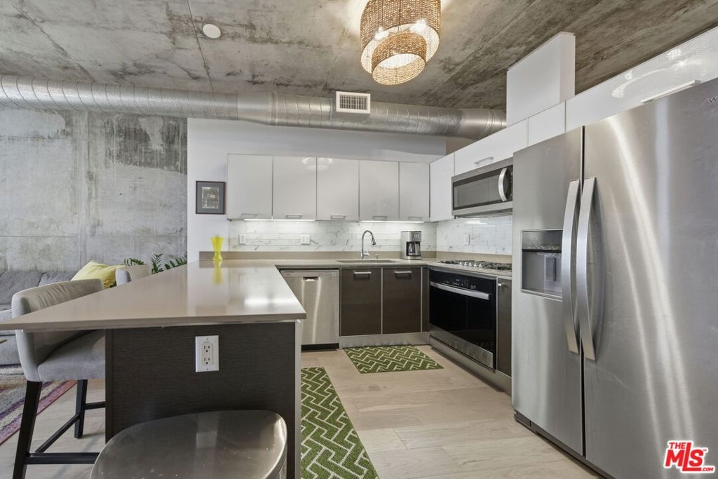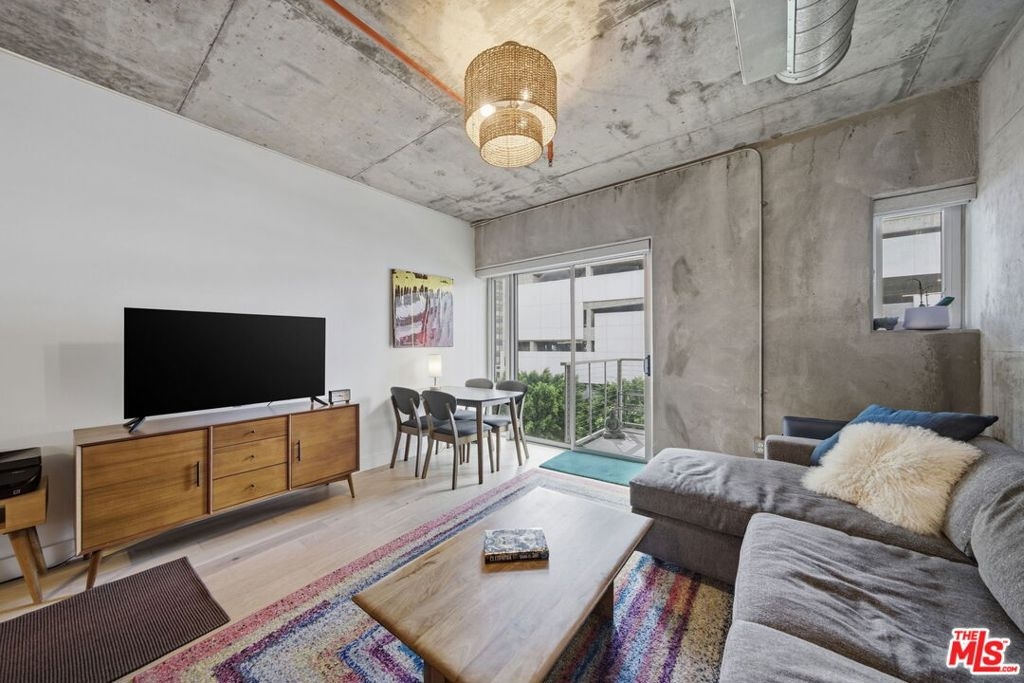 Step into the heart of DTLA at the highly sought-after Market Lofts,-this 4th-floor industrial-chic one-bedroom loft delivers that true Downtown lifestyle with soaring ceilings, oversized windows, and an open layout that just feels right. The views are a major highlight here: you've got a great look at the DTLA skyline right off Flower St, giving you that iconic city-light backdrop day and night.The kitchen is a standout for this building-a peninsula that adds bar seating (rare for these units) and makes the space perfect for morning coffee, casual dinners, or entertaining without sacrificing the loft feel. You'll also love the smart layout with a walk-in closet for real storage, which is a huge win in loft living.To top it off, this unit features the largest balcony you'll find in the building-an outdoor space that's incredibly hard to come by in DTLA and perfect for relaxing, hosting, or just taking in the skyline. Market Lofts rounds it out with resort-style amenities including a pool, gym, screening room, and a resident clubhouse, plus Amazon lockers for everyday convenience. And when it comes to location, you're just minutes from some of DTLA's best coffee shops, restaurants, Whole Foods, Ralphs, LA Live, and more-this is downtown living done right.