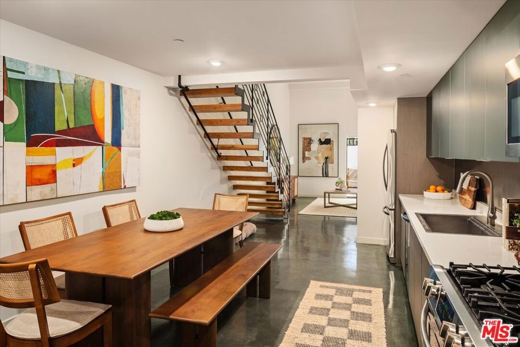 Discover exceptional value at the Cha Cha Cha, Virgil Village's most recent condominium development, where a limited-time $20,000 grant awaits qualified buyers. This sophisticated 2019-built residence offers three bedrooms and two-and-a-half bathrooms in an artfully designed space that harmonizes industrial elements with modern comfort. The open-concept layout boasts polished concrete and wood floors, soaring ceilings in a living area with private patio access via sliding glass doors, a top-to-bottom floating staircase, and an abundance of natural light throughout. The kitchen, equipped with stainless steel appliances and ample cabinetry, is adjacent to a dining area that is perfect for entertaining. The generous primary suite features high ceilings and a luxurious en-suite bathroom with a tub-shower combination. Upstairs, find a versatile loft-bedroom ideal for various lifestyle needs from home office to creative studio. The thoughtful floor plan includes an additional guest bedroom, full hallway bathroom, convenient powder room, and in-unit laundry. Enjoy resort-style amenities: a stunning outdoor pool with panoramic views, inviting BBQ area, a, gated guest parking lot, and comprehensive fitness center. Practical conveniences include two secured parking spaces with EV charging capability and a dedicated storage unit. Moments away, enjoy renowned spots like Budonoki Izakaya (recently recognized in Esquire's 2024 Best New Restaurants), Erewhon, Courage Bagels, Melody Wine Bar, VooDoo Vin, KinKan, and Good Friend Coffee. A stone's throw away from Sunset Junction and short commute to both Hollywood and Downtown LA. Explore this extraordinary opportunity and learn how to qualify for the exclusive $20,000 grant program!