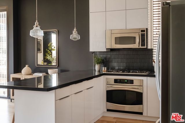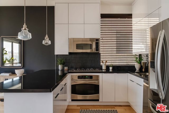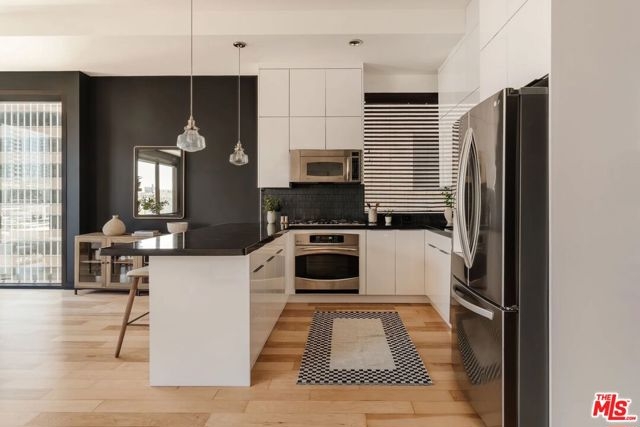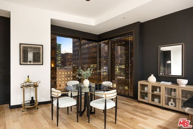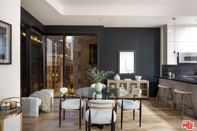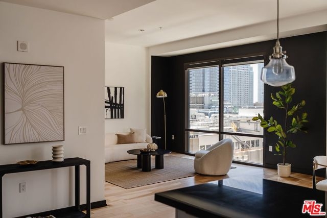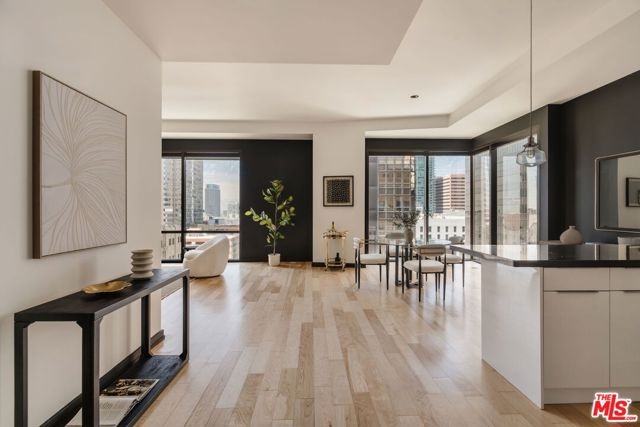 Bold and modern, welcome to a corner loft at the Hope Street Lofts in the Financial District of Downtown L.A. Immediately upon walking in you will be greeted by a formal hallway entrance, tall gallery walls and brand new wood floors. The semi-open floor plan is polished to perfection. The condo renders stunning city views from South and West facing floor-to-ceiling windows/walls. 2 stunning black accent walls add a layer of sophistication. Undeniably stylish custom Hunter Douglas window dressings. The loft features 2 bedrooms with 1 fully enclosed bedroom and 2 full baths. The perfect place to entertain or unwind. The sleek kitchen includes brand new double stacked white cabinetry, brand new backsplash, new stainless steel fridge & dishwasher and an oversized breakfast bar. Two full bathrooms with soaking tubs each. The principal bathroom features luxurious dual vanity sinks, mosaic tile, and a wow-factor spacious walk-in closet with custom shelves. Recessed lights throughout. Washer and dryer in unit. Hope Street Lofts is a boutique art deco condo building with only 80-units. Building amenities include 24/7 security, front desk concierge, a rooftop with panoramic Downtown views, a helicopter pad, sundeck, barbecue grills and a chic wet bar. The rooftop was just redone and new furniture has been ordered. For lifestyle convenience, a game room and gym. Bonus feature: Large storage room in the basement exclusive to this unit. 1 unassigned parking space included - onsite with an elevator bank giving access to the 11th floor as well as the lobby.Located directly above the 7th Street Metro Station, enjoy the best of urban dwelling at your doorsteps. Near all the action at Crypto Arena or LA Live. Enjoy the best of food and beverages at Javiers or Bottega Louie. LIVE jazz on the rooftop of the Delphi Hotel just 1 block away. Across the street from the Bloc and the Downtown favorite Joeys. Whole Foods and the Broad Museum are a stone's throw away. Enjoy rich and diverse dining, museums, and entertainment options. Truly, the best location in Downtown L.A.