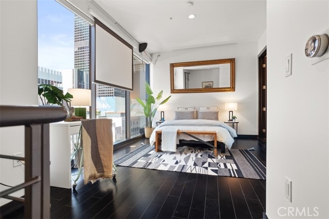 DTLA Living with VIEWS. This stunning 1 bed / 1 bath / 920 sq ft condo is one of the few highly coveted two-story floor plans, boasting incredible natural light, epic views and a well-designed layout. Positioned with direct access from the 15th and 16th floors, of the prestigious Hope Street Lofts building in DTLA, this unit embodies modern urban living. The main living area offers floor to ceiling windows, consistent flooring throughout, reclaimed wood clad media wall, in unit laundry and recessed lighting. The kitchen marries style & contemporary finishes with efficiency and includes a stainless steel appliance suite as well as custom tile work. Upstairs, a true primary suite boasts breathtaking city views, multiple closet & storage solutions, a spacious en suite full bathroom and convenient projector screen with media system. One dedicated, unassigned parking spot is included with the unit, in the private building garage. The Hope Street Lofts offers a classic art deco façade, 24-hour concierge & controlled access, fitness studio and sprawling roof top patio with 360 degree DTLA views, with the 7th St Metro Station at the base of the building. Conveniently located in the Fashion District, you’re immersed in the shops, restaurants and vibrant lifestyle that make this one of LA’s hottest neighborhoods. Welcome Home.