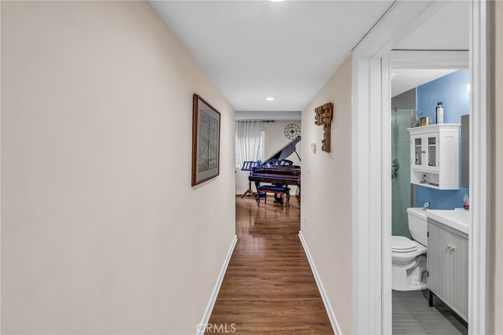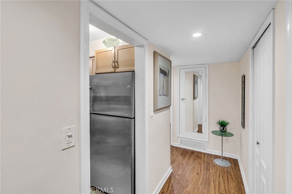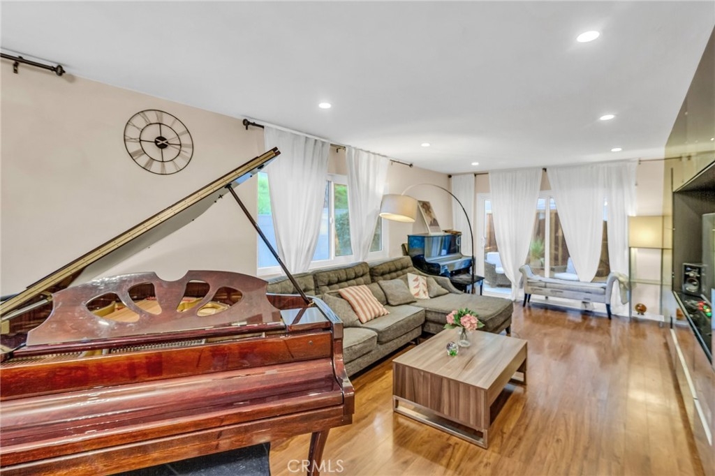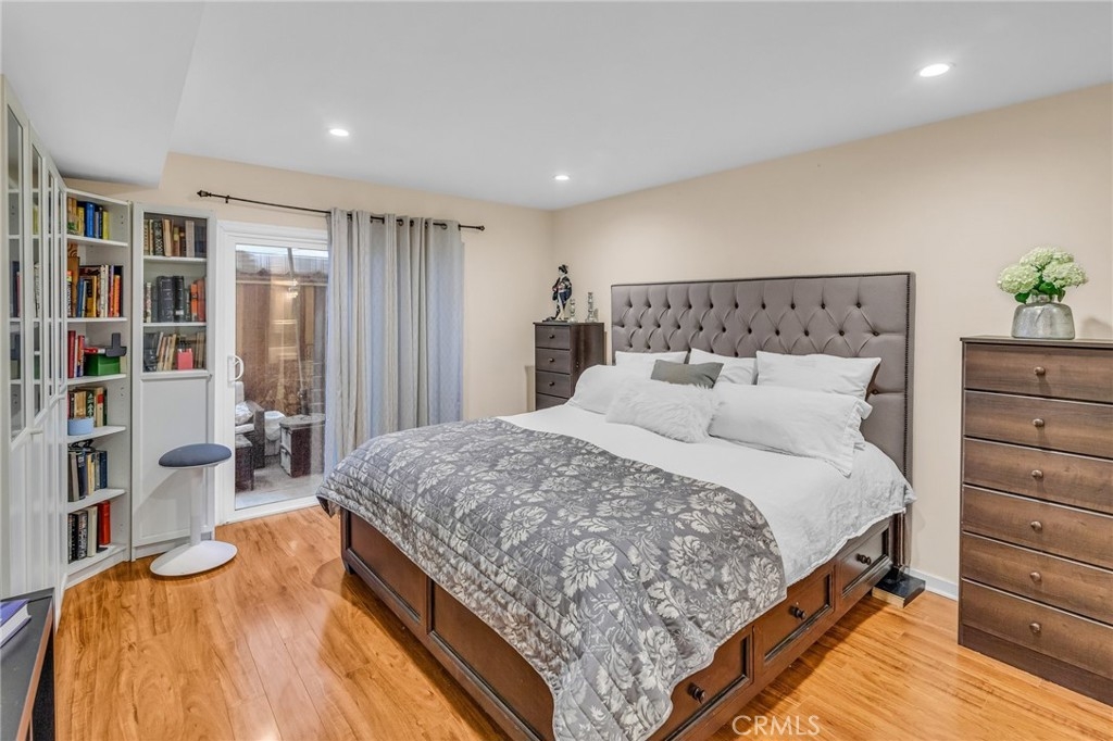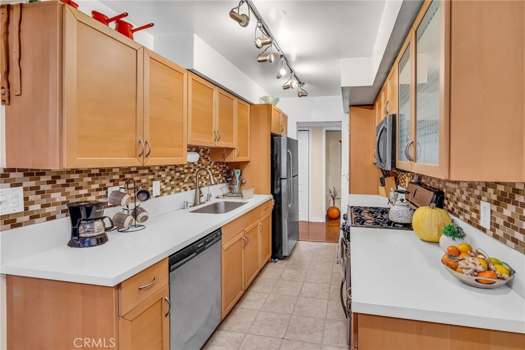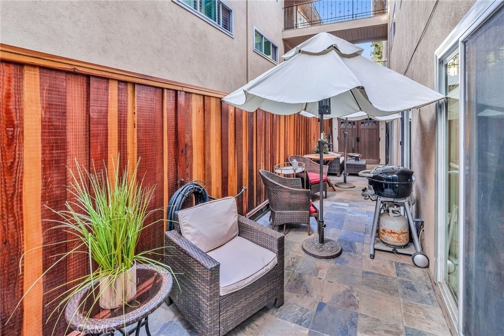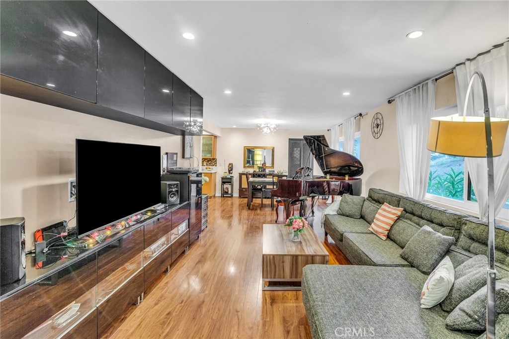 Discover this rare gem at The Highlands! Hollywood elegance and hillside serenity surround this rear facing unit. This home has 2 bedrooms and 2 bath rooms, with a spacious living room and an open floor plan which connects to the dining room. The kitchen has quartz countertops and sleek stainless steel appliances that offer a modern and sophisticated touch. The beautiful master suite has a custom closet space that leads to the ensuite bathroom. The 2nd bedroom has custom cabinets as well. Each room elegantly extends onto an extra large private patio, a unique feature that seamlessly blends the indoors with the world outside. There are two side-by-side parking spaces, and extra storage in the garage. The Highlands community was designed by the esteemed Mid-Century Architect Paul R. Williams, and offers a resort-like range of amenities including 2 pools, fitness room, tennis courts, hot tub, dog park area, and a large community room. Truly a woodland tranquil oasis, in the heart of the city. It's just a short walk to the Hollywood Bowl and trendy restaurants, shops, grocery stores, hiking trails and parks.
