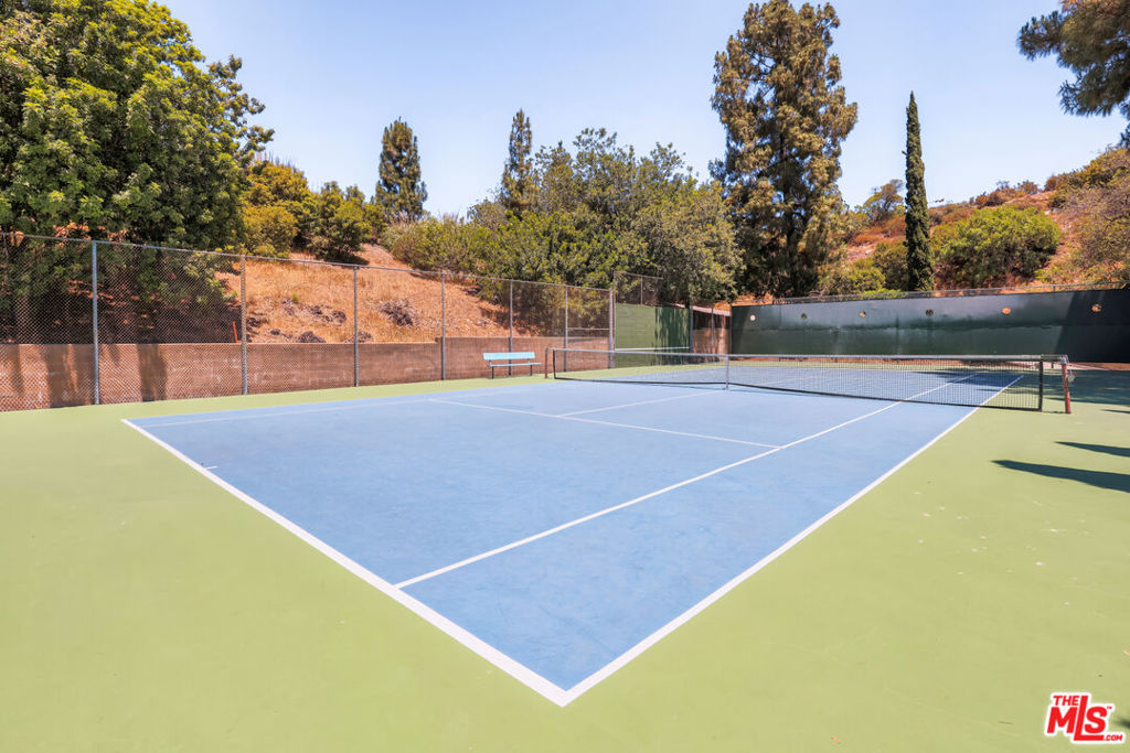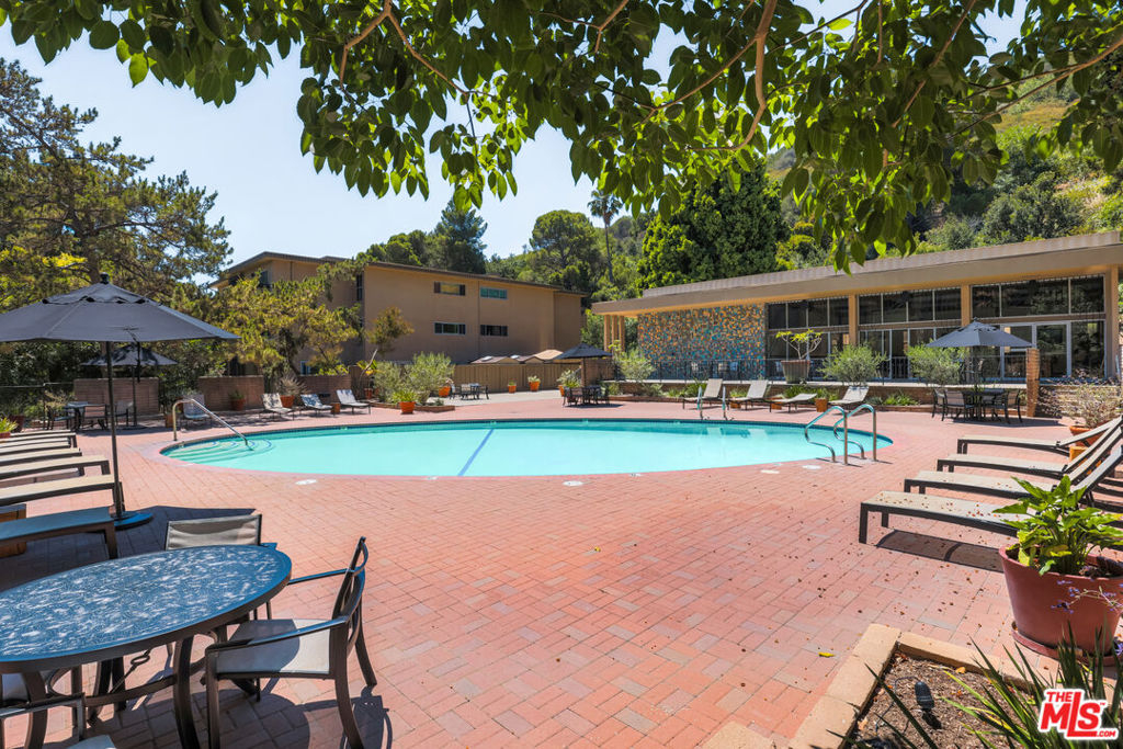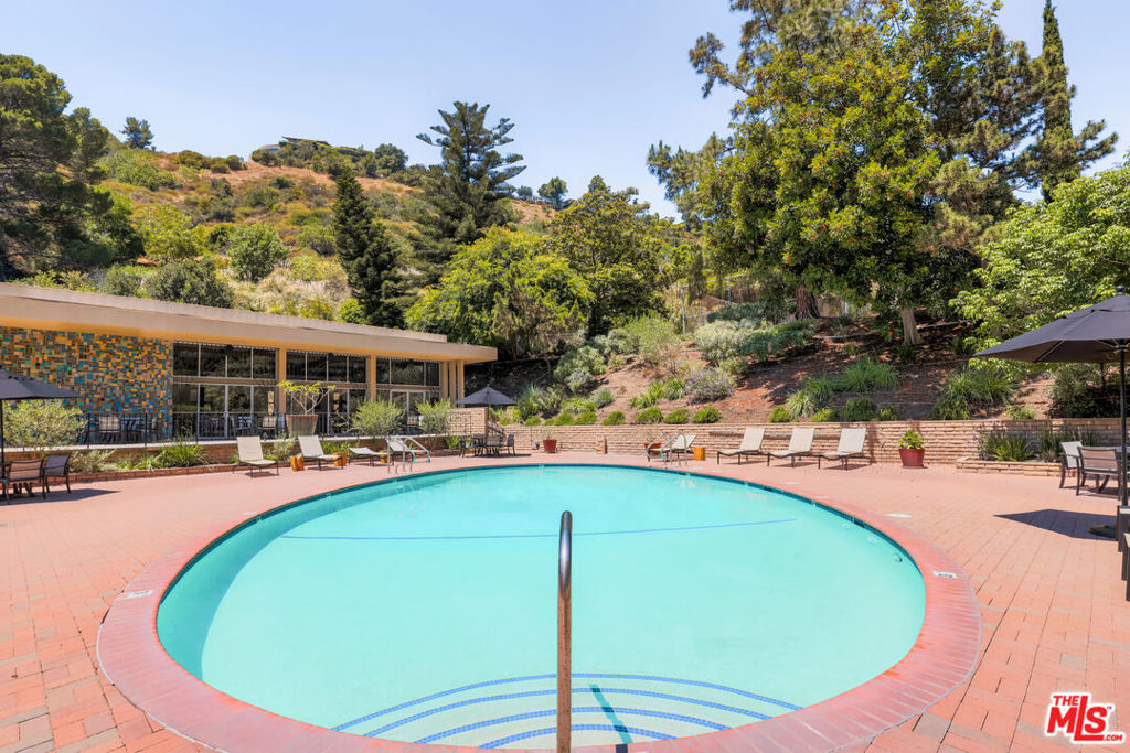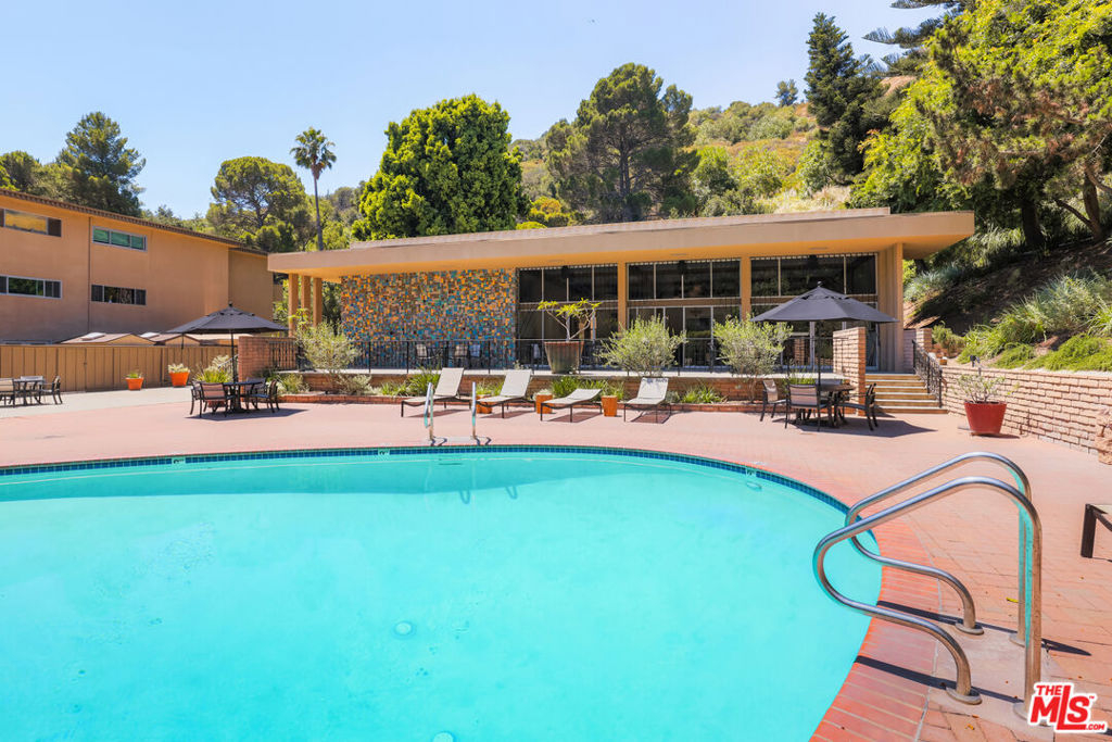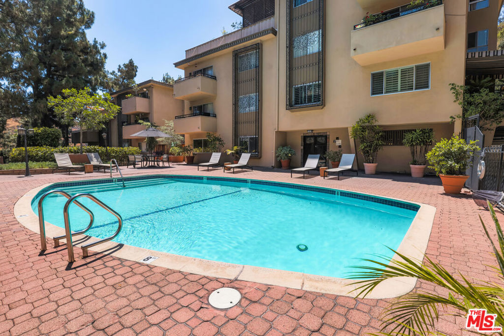 PRICE REDUCTION! Beautiful corner end-unit 2-bedroom, 2-bath condo with office and wrap-around balcony set in the trees above Cahuenga Blvd. New stainless steel appliances, solid wood cabinetry, central AC, recessed lighting, extra storage, updated bathrooms and custom shutters. A cleverly converted pantry offers a private office with French door and built-in bookshelves. Enjoy your morning coffee on the wrap-around balcony overlooking a peaceful, tree-covered hillside where deer and rabbits wander. High speed Wi-Fi. Steps from laundry, fitness center, saunas and pool. Resort-style amenities include pools, whirlpool spa, fitness center, saunas, tennis and pickleball courts, dog-friendly parklet, and clubhouse with ping pong, billiards, TV lounge, and kitchen. Close to public transportation, the 101, Runyon Canyon, Hollywood and Highland, Universal City Walk and Hollywood Bowl. HOA includes building and Earthquake insurance, water, sewer, trash, security patrol, on-site management, clubhouse and amenities, 2nd HOA fee of $29.99 is for discounted high-speed internet through Spectrum.