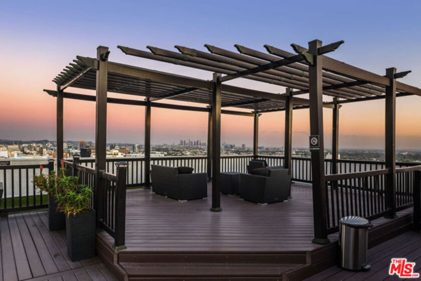 Location, Location, Location! Discover this newly renovated, sleek, modern and sophisticated penthouse situated in the heart of Hollywood. This fully updated residence welcomes you with grand double-door entry, an expansive open floor plan, designer finishes, and brand-new upgrades throughout all framed by captivating city views. The gourmet kitchen features premium Samsung appliances, elegant Caesarstone countertops, and a stylish wet bar perfect for entertaining. High-end details continue with square Duravit toilets, a soaking tub in the secondary bathroom, and rainfall shower heads in both bathrooms. The spacious primary suite includes a custom-organized walk-in closet, built-in pendant lighting, a versatile nook, and a stunning spa-like bathroom showcasing imported Japanese black tile and an open-concept double shower with dual rainfall heads. Additional highlights include a new HVAC system, Nest thermostat, smart smoke detectors, in-unit washer and dryer, and two tandem parking spaces equipped with EV charging. Franklin Towers an iconic Hollywood high-rise offers premier white-glove amenities such as 24/7 concierge and valet service, a heated lap pool and spa, steam room, sauna, rooftop gym, clubhouse, dog run, and a sprawling rooftop deck with panoramic 360 degree city and ocean views. Located just minutes from Runyon Canyon, Grauman's Chinese Theatre, and world-class dining and nightlife.