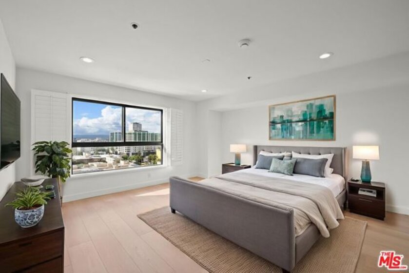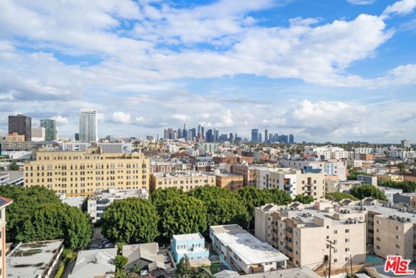 Experience elevated Koreatown living in this top-floor penthouse condominium at Richmore Gardens Twin Towers. This expansive 2-bed/2-bath home is flooded with natural light through dramatic windows, offering panoramic city views from both the living space and your private balcony. The thoughtful split-bedroom layout places the primary suite on one side of the home for privacy, featuring a spacious closet, a soaking tub, and a separate walk-in shower. The second bedroom sits on the opposite side, ideal for guests or a home office. Designed with premium finishes: granite counters, recessed lighting, and hard surface flooring, the home delivers an elegant, modern feel. Building amenities include the convenience of an on-site EV charging station, a pool, spa, gym, and secured lobby access. Two assigned side-by-side parking spaces complete this standout offering. Located just south of Wilshire, you're moments from dining, cafes, markets and much more!