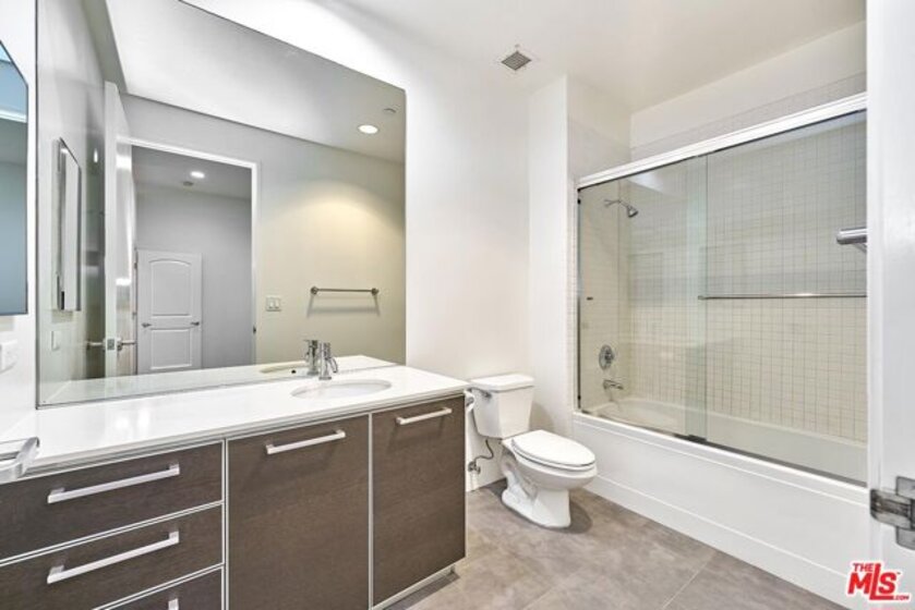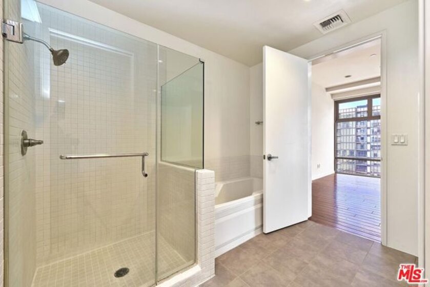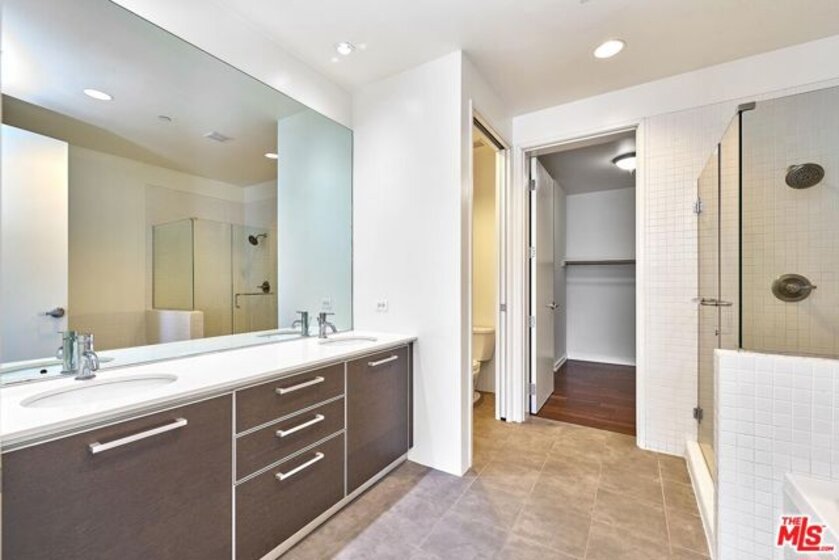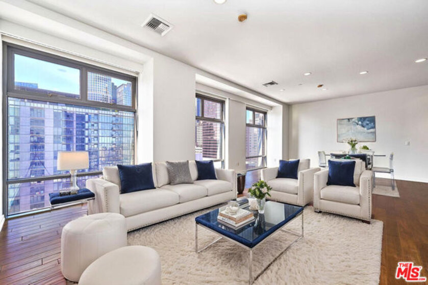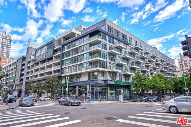 Indulge the senses by living in one of Downtown's premier high-rise buildings, Sky Lofts. Situated up on the 15th floor, luxuriate in soaring high 10'+ ceilings, captivating south-facing floor-to-ceiling windows, hardwood floors. Encapsulating the true loft living lifestyle, the main bedroom features an open bedroom format that leads out to the living room while still having its own en-suite bathroom fitted with a gorgeous dual sink vanity, enormous walk-in closet, and separated tub & shower enclosure. Sky Lofts, a modern 22-story masterpiece, welcomes residents with a private entrance, a grand lobby, and an indulgent two-story height guest lounge equipped with a kitchen for entertaining. Additional amenities include a private screening room, state-of-the-art fitness center, 24-hour attended lobby, and high-speed elevators. Embrace the vibrant energy of Downtown LA while enjoying the serene sophistication of your home in the sky. Included with the home are 2 assigned parking spaces and access to an array of amenities including a 24-hour fitness center, media screening room, resident's lounge with a full kitchen, dog run, on-site management, loading dock with freight elevator, and 24-hour security & concierge. Perfectly situated near multiple popular destinations such as Whole Foods, Ralph's, The Bloc, FIGat7th, 7th & Metro Station, and Bottega Louie!