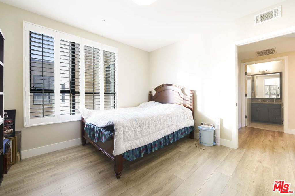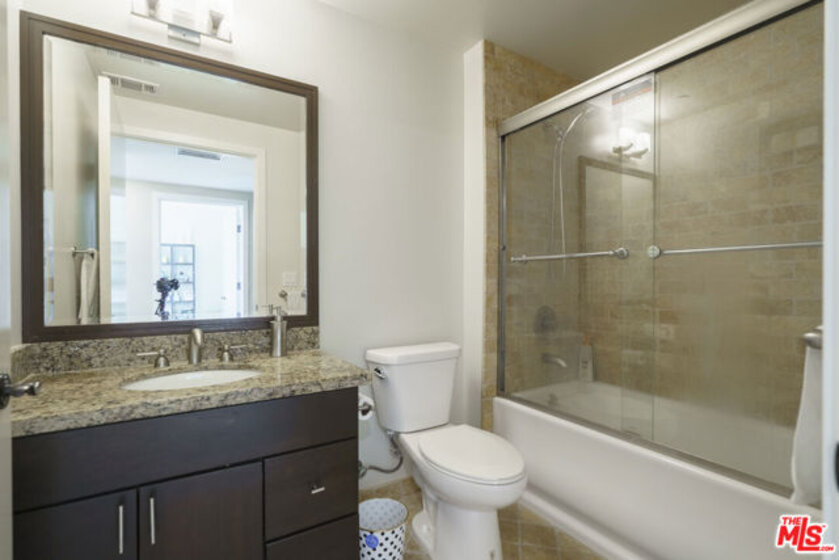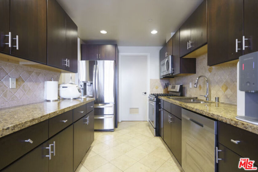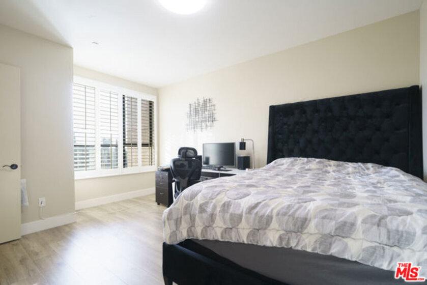 Modern and quality built condominium in Hancock Park. This unit is a very bright and airy front top floor PENTHOUSE. It's facing the east and south corner. Magnificent downtown view from two glass walled balconies. Nice open floor plan, upgraded wood flooring throughout, built-in stainless steel appliances, granite counters, Omega self-closing cabinets, large primary bedroom with walk-in closet, laundry room with washer/dryer and extra storage space, fireplace, UV coated double windows with wood shutters, video intercom for visitors, community conference room. 2 parking spaces and private storage inside the gated garage. Close to KoreaTown, LACMA, The Grove, Beverly Center, DTLA, USC.. Low HOA dues.