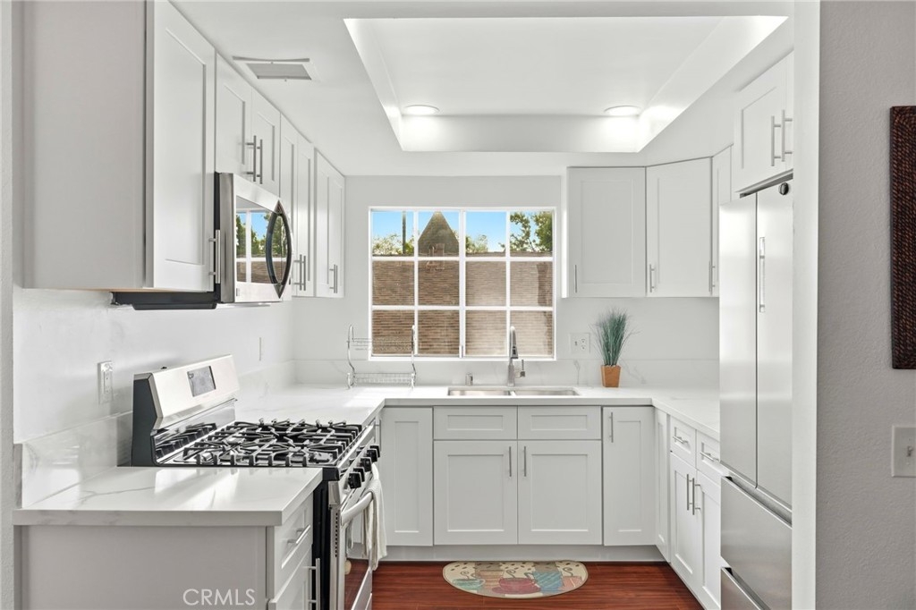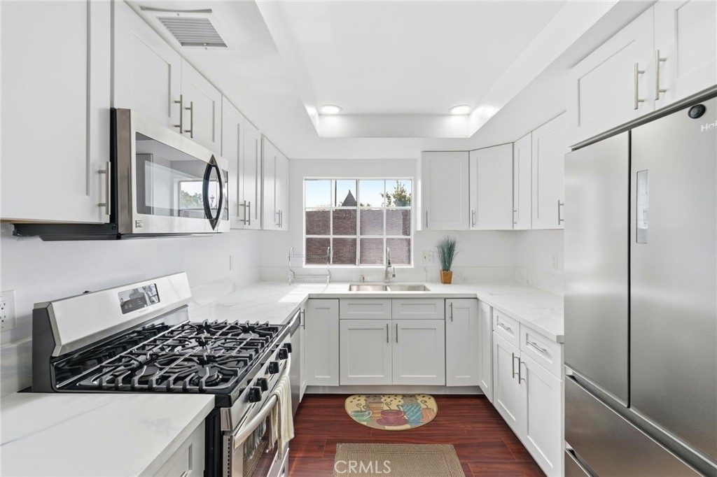 Step into the comfort of this beautifully designed townhouse-style condominium offering the perfect blend of privacy, space, and low HOA. Privately gated with commanding street presence, this condominium is nestled in a quiet, sought-after neighborhood of Windsor Village, offering a serene ambiance while being conveniently close to exceptional dining, diverse shopping options, highly rated schools and just minutes from Korea Town and Beverly Hills. Meticulously remodeled in January/February 2026 with new paint throughout the three levels, the home blends quiet sophistication and effortless style nestled behind gated community. Enjoy ultimate privacy with no neighbors directly below or above you, ensuring a peaceful retreat. The first level features two spacious bedrooms with a full bath and view of the park and neighborhood. The second level features an expansive and light-filled layout with soaring ceilings, oversized windows, kitchen, dining area, 1/2 bath, and a spacious living area with a fireplace that extends to a balcony with stunning views of the park. The open living and dining areas are filled with natural light and lead to your balcony overlooking the park and neighborhood, perfect for morning coffee or evening unwinding. Discover a meticulously remodeled dream kitchen, a culinary masterpiece featuring quartz countertops, sleek cabinetry, new floor, new light fixtures, and stainless-steel appliances that look like they belong in a design magazine. The second floor leads to the third level which features a versatile loft-style third bedroom complete with a closet, private balcony, and views of the park and neighborhood perfect for guests, a home office, or creative space. Laminate flooring throughout except the steps. Amenities include gated access, 2 tandem underground parking spaces, 2 garage storage cabinets, central air/heat. Just a few walks to Harold Henry Park, perfect for morning exercise, weekend relaxation, and evening stroll! Brand new A/C installed 2025 and a new water heater installed in January 2024! Thoughtfully designed for comfort and convenience, the home includes a laundry room with new washer/dryer. Here on South Lucerne Boulevard with its matured trees and beautiful flowers, the air carries the quiet confidence of a place where time slows down, not out of necessity, but out of sheer indulgence. A rare opportunity to enjoy a serene lifestyle in one of Windsor Village's most charming residential communities.