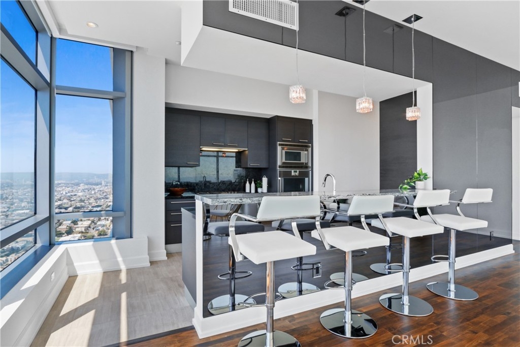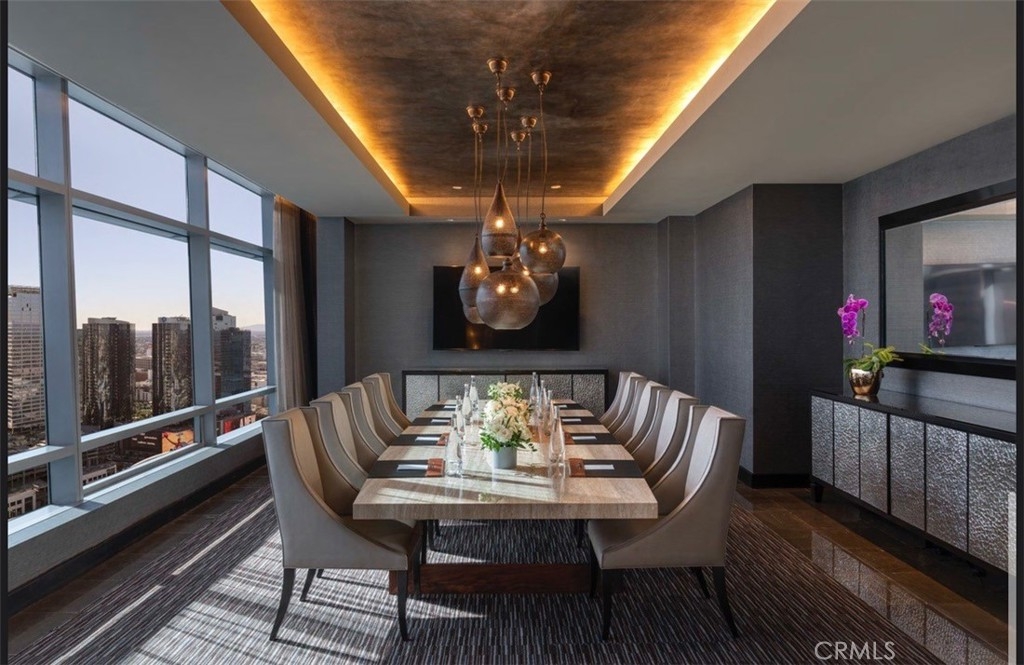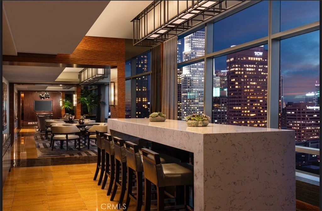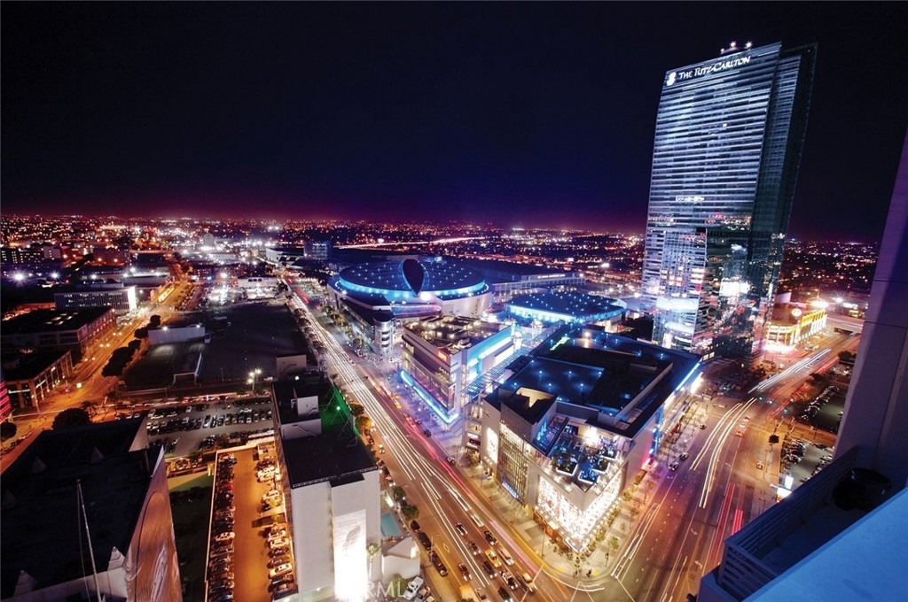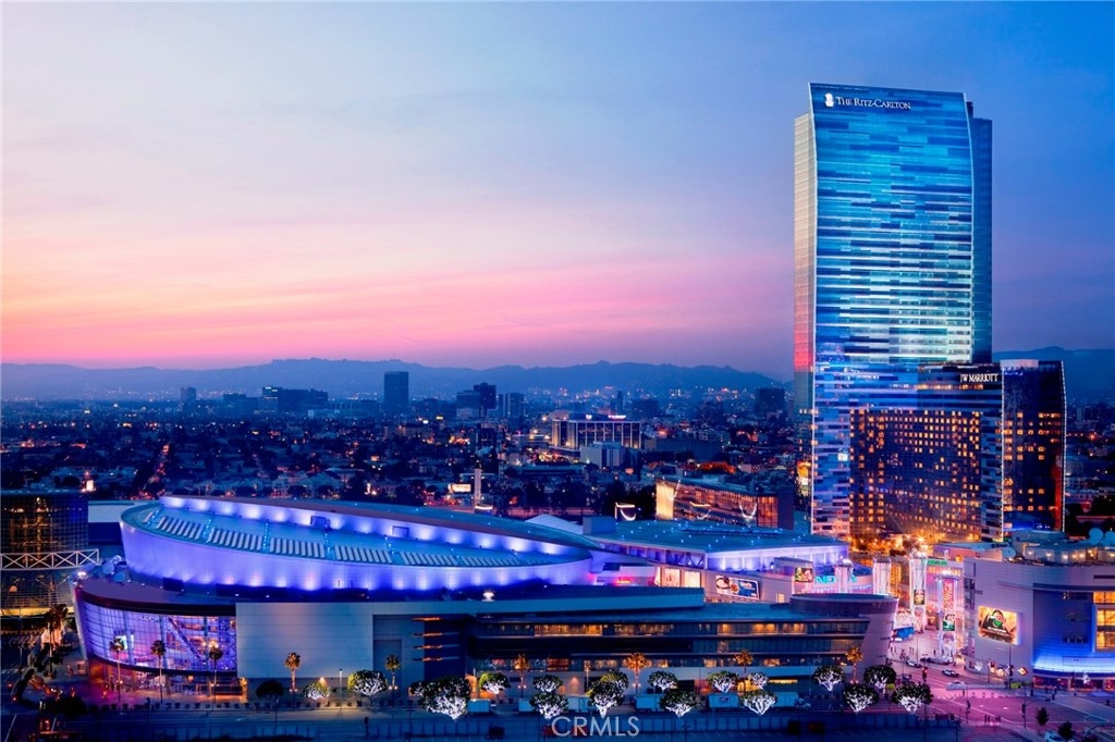 Welcome home to the southeast facing corner unit you've been waiting for! This spacious corner unit at the Ritz Carlton Residences at LA Live sits on the 42nd floor and offers 1,850 square feet of living space and magnificent southeast facing views. The property has 2 large bedrooms each with its own en suite, a powder room with in-unit washer and dryer, and a recently updated open concept kitchen that opens up into the living room and dining room, perfect for entertaining. Additional upgrades over the years include, custom chandeliers throughout the home, built in closet shelves and drawers in the primary room, light dimmers in each room, newer carpet in each bedroom, additional recessed lighting throughout the home, and more. The unit has breathtaking city views of the 6th Street Bridge to the East, direct views of the Crypto Center and Palos Verdes Rolling Hills to the South, and Century City lights to the West. As a resident you will be able to enjoy 5-star amenities such as full service valet parking for you and your guests, 24/7 concierge service and security, access to the Ritz Carlton Spa, rooftop pool with cabanas, fitness center, media room, LA Live discounts and more! This home is a must see! Schedule your tour today!