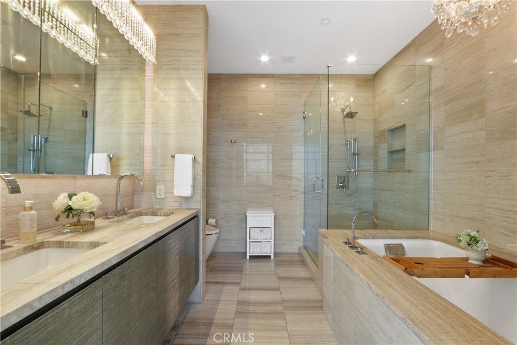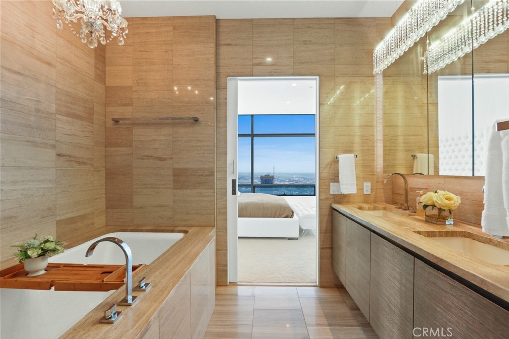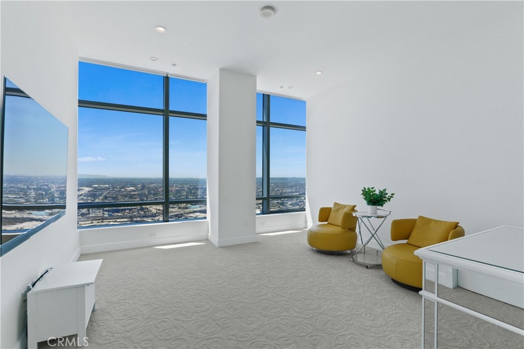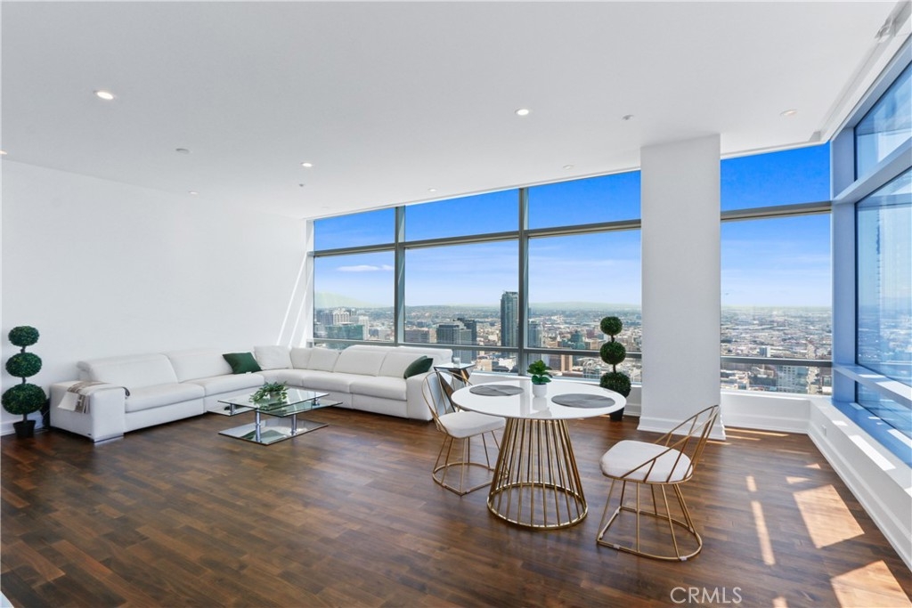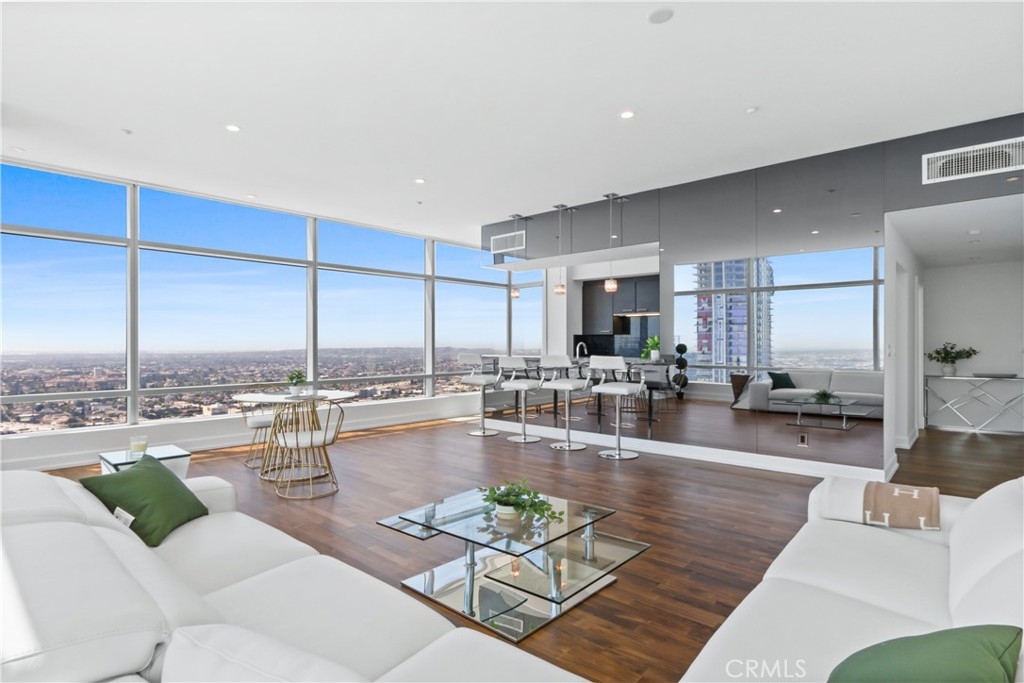 Welcome home to the southeast facing corner unit you've been waiting for! This spacious corner unit at the Ritz Carlton Residences at LA Live sits on the 42nd floor and offers 1,850 square feet of living space and magnificent southeast facing views. The property has 2 large bedrooms each with its own en suite, a powder room with in-unit washer and dryer, and a recently updated open concept kitchen that opens up into the living room and dining room, perfect for entertaining. Additional upgrades over the years include, custom chandeliers throughout the home, built in closet shelves and drawers in the primary room, light dimmers in each room, newer carpet in each bedroom, additional recessed lighting throughout the home, and more. The unit has breathtaking city views of the 6th Street Bridge to the East, direct views of the Crypto Center and Palos Verdes Rolling Hills to the South, and Century City lights to the West. As a resident you will be able to enjoy 5-star amenities such as full service valet parking for you and your guests, 24/7 concierge service and security, access to the Ritz Carlton Spa, rooftop pool with cabanas, fitness center, media room, LA Live discounts and more! This home is a must see! Schedule your tour today!