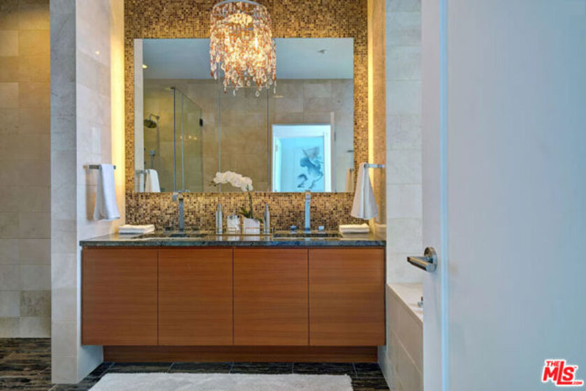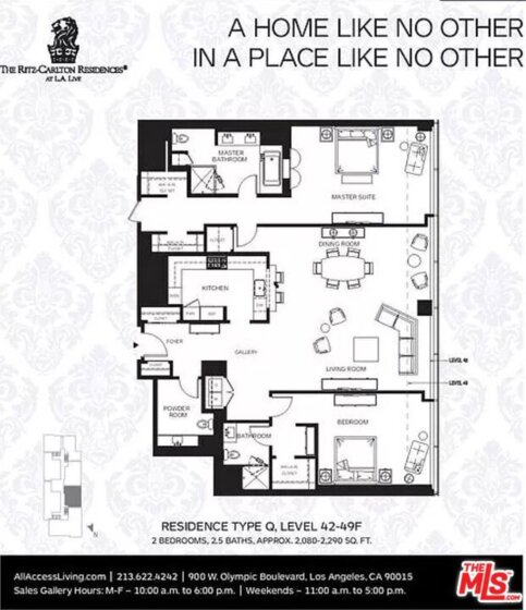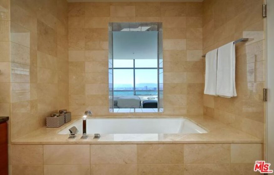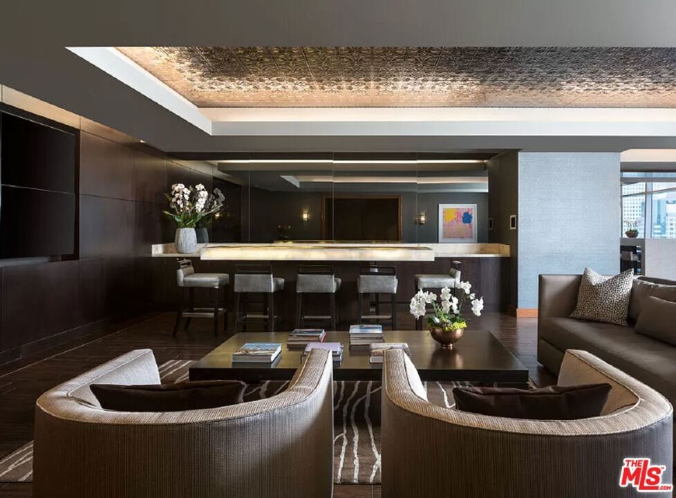 Welcome to an Iconic Living Experience at the Ritz-Carlton Residences in Downtown Los Angeles, where luxury meets lifestyle in the heart of the city. This expansive and highly coveted 2-bedroom condominium, located on the 44th floor, offers an unrivaled sanctuary boasting breathtaking views and unparalleled amenities. The open floor plan of the kitchen and living room with it's ceilings of up to 14 feet create a light and airy feel, while natural stone floors and countertops enhance the feeling of elegance and luxury. In the kitchen you will find high-end Gaggenau appliances as well as Italian Snaidero cabinets. Experience the ultimate in privacy and comfort with two spacious bedrooms located on opposite wings of the residence, featuring en suite bathrooms. The primary suite boasts a generously sized walk-in closet and a luxurious spa-like bath adorned with floor-to-ceiling stonework, a soaking tub, separate shower, and double vanity. Homeowners enjoy access to 24-hour room service from the Ritz-Carlton hotel, as well as valet parking and a dedicated residential concierge and doorman. Additional amenities include barbecue facilities, a billiard room, clubhouse, and more, all within the confines of this secure and impeccably maintained building.