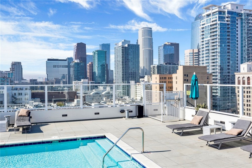 Stylish End-Unit Loft in Historic Downtown LA | Airbnb Approved Welcome to 939 South Broadway, where industrial design meets modern luxury in the heart of Downtown Los Angeles. This 1-bedroom, 1-bathroom end-unit loft offers 760 sq ft of open-concept living space with soaring 12-foot ceilings and oversized windows that flood the home with natural light. The sleek, modern kitchen features stone countertops, custom cabinetry, and high-end stainless steel appliances—a perfect blend of style and functionality. Enjoy added privacy with only one shared wall, while the spa-inspired bathroom invites relaxation with a deep soaking tub and designer finishes. Perched on the 6th floor, this private corner unit boasts sweeping city views and overlooks Broadway, showcasing the building’s iconic historic façade. Additional conveniences include an in-unit stacked washer and dryer, secure key-fob entry, and 24-hour security for peace of mind. Residents enjoy world-class amenities such as: Rooftop pool and spa Fitness center Lounge areas and cabanas BBQ stations Breathtaking skyline views Airbnb-approved building—ideal for investors or part-time residents. Assigned parking available for $200/month. Step outside and experience the vibrant energy of DTLA. The United Theater is just downstairs, with Apple, Urban Outfitters, Whole Foods, and countless dining and nightlife options within walking distance. Now is the time to invest in Downtown LA—with the Olympics and FIFA World Cup coming in 2026, the area is set to become one of the most globally watched and visited destinations. Don’t miss your chance to own a piece of LA’s future. Schedule your private showing today!
